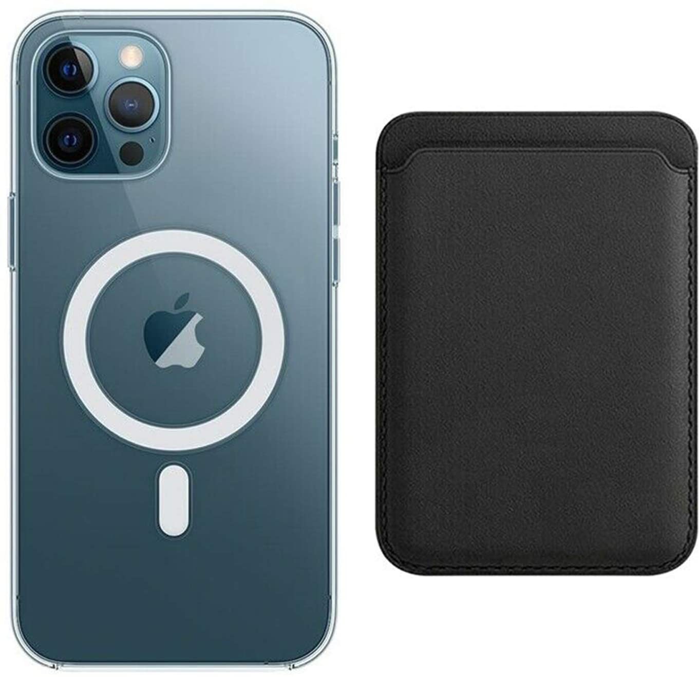 2020 New Case Compatible with iPhone 12/12 Pro/12 Pro Max, Magsafe Leather Wallet Card Holder + Magnetic Clear Phone Case Cover (iPhone 12 Pro Max 6.7", Clear+Black)