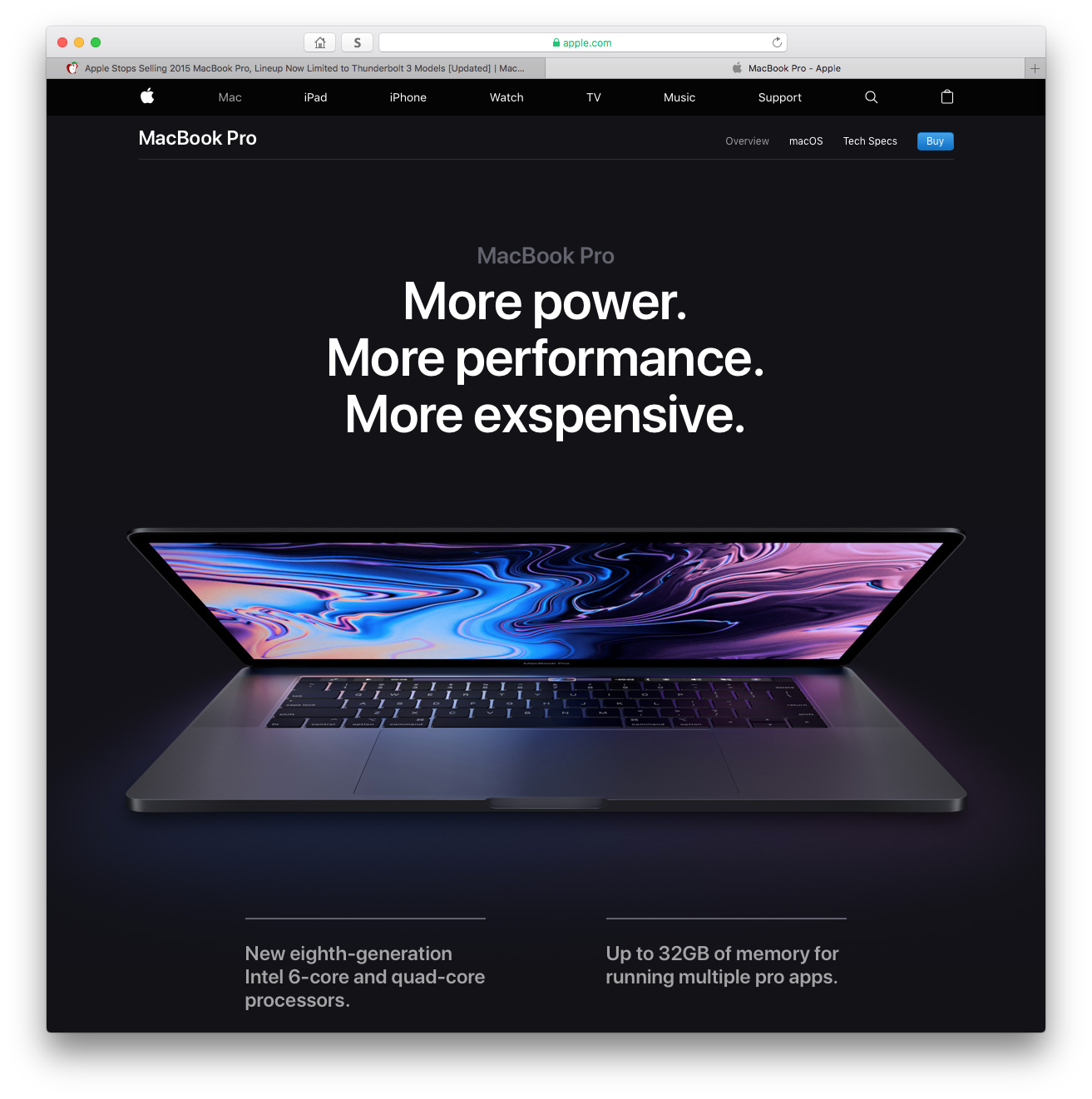 2018 MacBook Pros feature eighth-generation Intel Core processors. Apple says the 15-inch model is