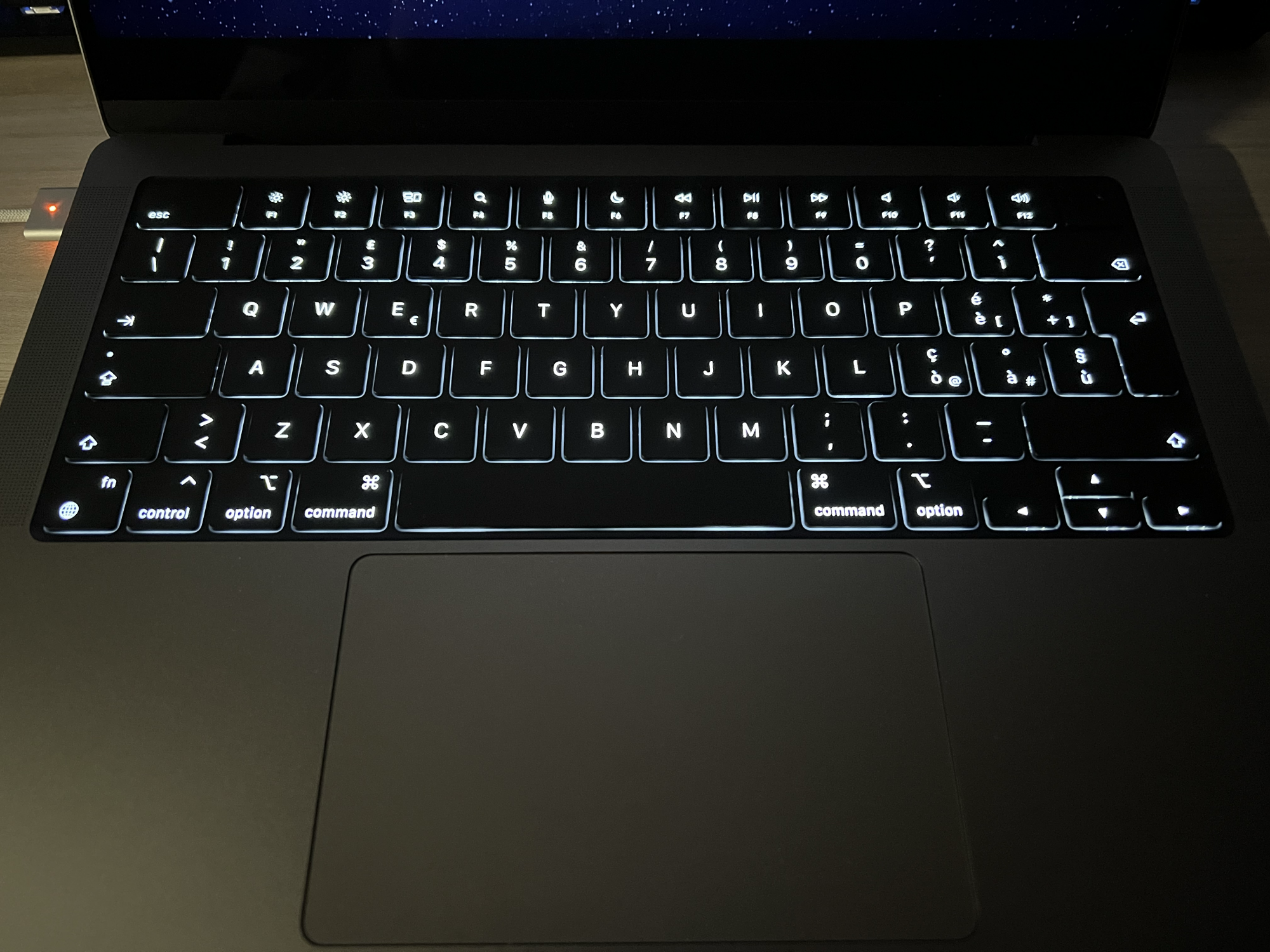 The first two photos are taken with the keyboard backlight at the minimum level, the other two are taken with the backlight at the maximum level.