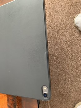 I got the smart keyboard folio for the new 11" iPad pro about one month ago. It is already seriously worn at one point, see picture. It's right in the middle on top edge. This is where I put my thumb when I pick up the iPad 90% of the time. It's almost like my thumb has made an indentation, or made the outside plastic loose. As far as I know, nothing else has damaged the keyboard folio; and I didn't have chemicals or grease on my thumb. Come on. The keyboard folio should be able to withstand one month of picking it up! What can I do? I have AppleCare+, but it doesn't cover the keyboard folio. The keyboard folio should still be under ordinary warranty, and this is certainly no ordinary wear, but it's hard to prove that nothing else happened. Anybody else seen anything like this?