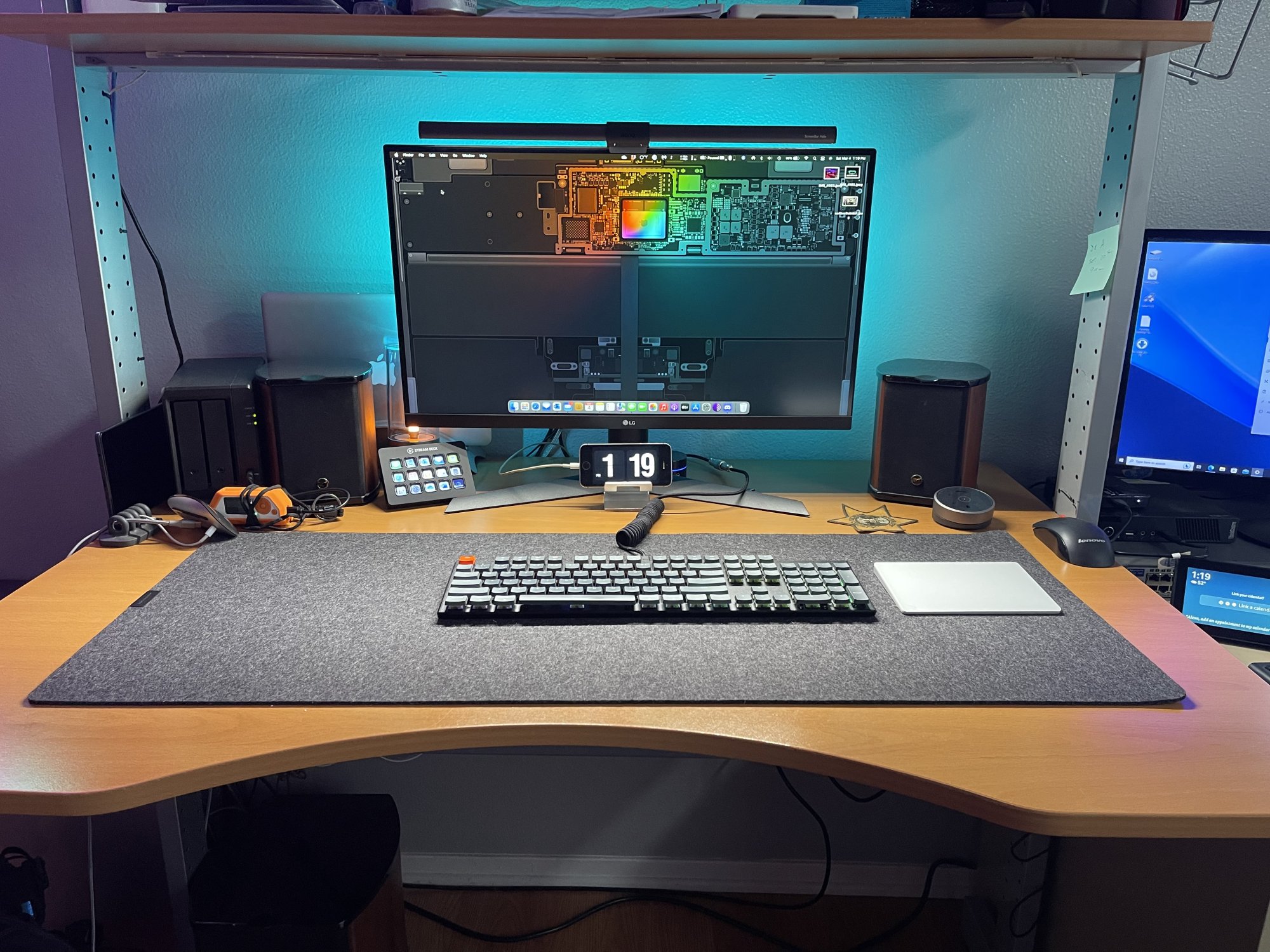 Edit: MBP behind the speaker/monitor is my old cMBP, Not the M2 the keyboard is used with.