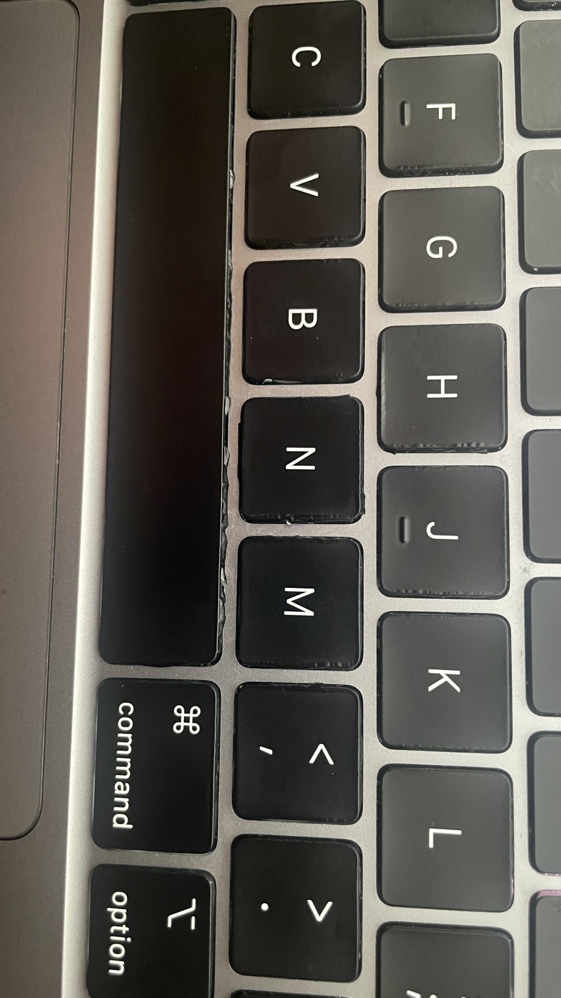 I have a 2020 Macbook Air that I've had since June 2022. I bought the 3 year AppleCare+ warranty on it and everything has been great. I have had the screen replaced once already after I went to use it one day and it was broken (still not sure to this day what happened). Last night, I decided to eat ice cream in my bed and while getting into bed with my laptop open, I spilled a small drop on my keyboard and it started seeping into the spacebar, b, n, and m keys. I quickly turned it off and flipped it upside down while I ran to grab some isopropyl alcohol and cotton pads. I put some on a cotton pad and started rubbing the affected keys. I have used rubbing alcohol to clean my electronics and my prior laptop forever and have never had any problems. I rubbed the keys for about two minutes and then let it dry and didn't use my computer for the rest of the night. Today, I opened my laptop and noticed that those keys along with the v key were a little bit sticky. I put a small amount of alcohol on a q-tip and went to run it along the sides of the keys, when I realized that they are completely peeling around the edges. The h and j keys are also bubbling around the edges and beginning to peel. It is hard to type with these keys now as well, as they are not registering every single time I press them. I am going to be contacting AppleCare, but I would like to ask for opinions about what to tell them or ask for. Would they just be replacing these specific keys or would they need to replace the entire keyboard? I am very perplexed and quite annoyed as to how a little rubbing alcohol being rubbed on the keys caused this much damage. I'll most likely have to pay the fee of $299 to fix this this regardless, right? I've never seen anything like this before and never did I ever consider that the keys could just start peeling, especially after just some rubbing alcohol. I don't believe I used too much but maybe I did? The cotton pad definitely was not soaked. Suggestions on how to go about this would be greatly appreciated. Thank you!