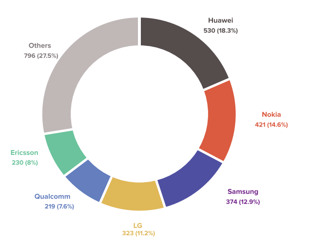 The big players in this field (companies like Qualcomm, Ericsson, Nokia, Samsung) have cross-licensing agreements. Huawei was very active in filing patents in recent years, but they entered the field relatively late and their portfolio of essential patents is still smaller compared to the older companies that practically invented cellular networks.Most 5G patents are held by Huawei. Even Qualcomm licenses a lot of patents from Huawei, especially when it comes to TD as opposed to the traditional FDD technology.