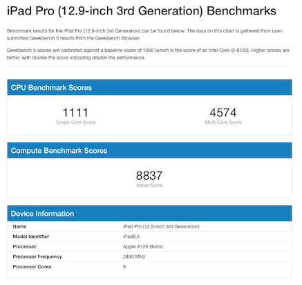 Let's compare the performance of the current iPads to the performance of the current MacBook Pros.