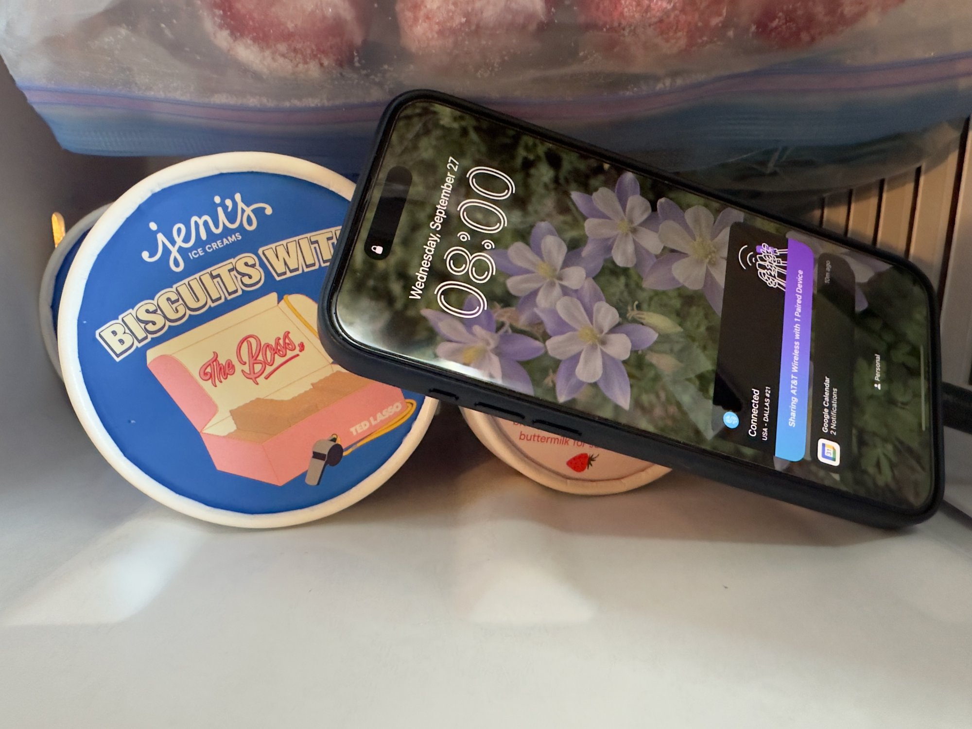 Here is a picture of my brand new, amazing Titanium iPhone 15 Pro Max in its preferred habitat simply trying to sync the days iCloud Photos (seriously, wasn't even using wireless charging and Photos paused sync because 'iPhone needs to cool down', and I live high in the mountains, where it's already getting down into the 40s and 50s....yet, this is the only way I could get it to actually perform something as basic as an iCloud Photos sync of the day's photos).