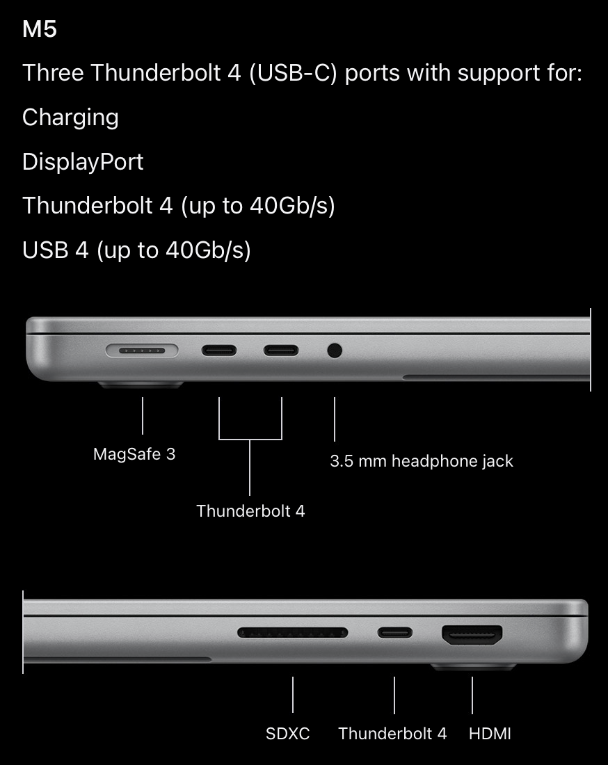 I didn't check news, haha.As expected, the base M5 MacBook Pros are Thunderbolt 4