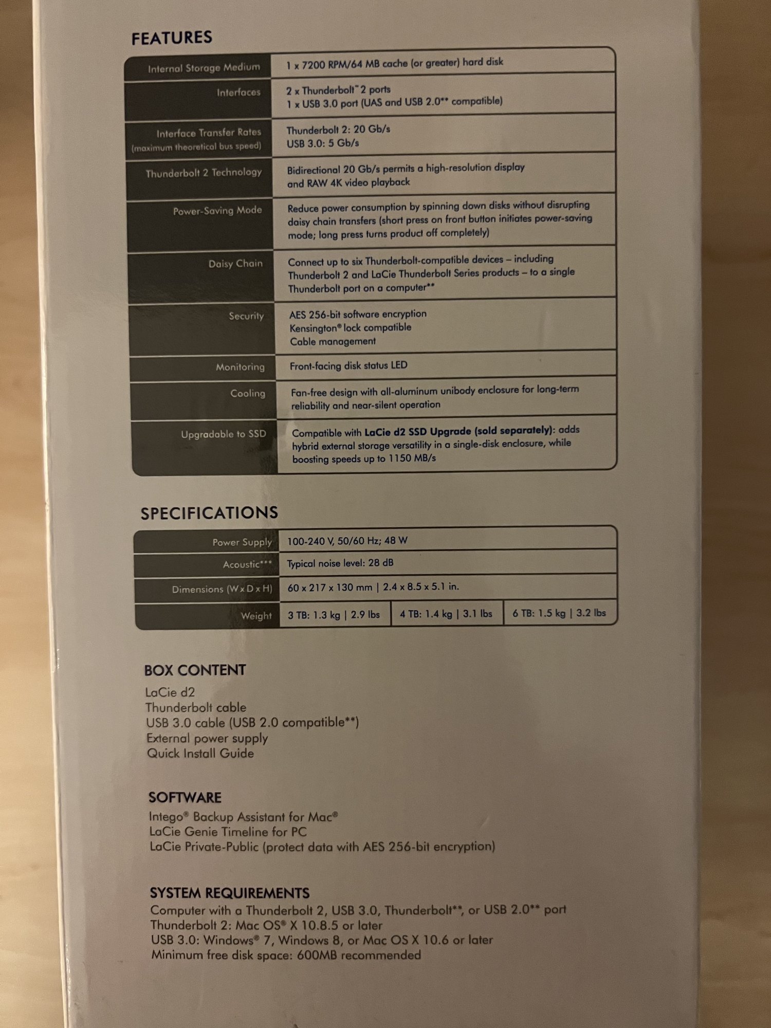 The Lacie is formatted to Mac OS Extended (Journaled).