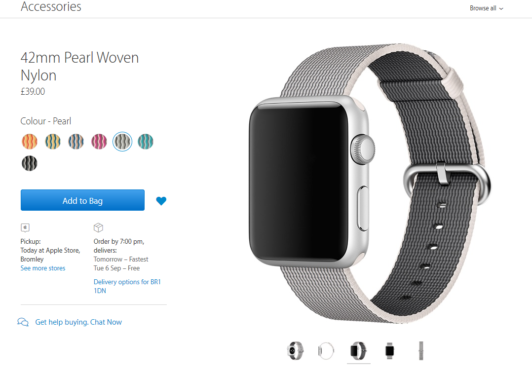 I love this. It's going to be my next band.Finally got an Apple Nylon band and I love it! I tried on every color in the store and I really liked the black one on my rose gold watch but wanted something bright and colorful for summer. I thought I wanted scuba blue but once I saw the bands actually on my watch and on my wrist I fell in love with the pink one!