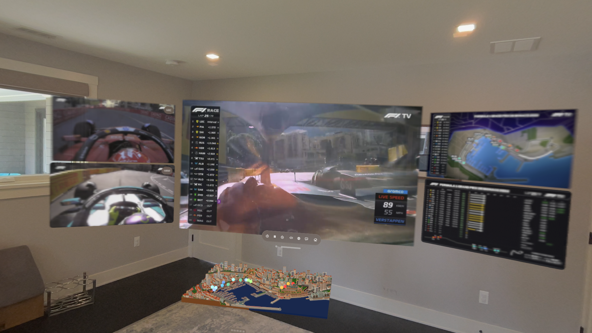 For Formula 1 fans, there's a new app called Lapz that is designed to provide an immersive F1 experience on the Apple Vision Pro headset. Users can watch multiple race feeds from different angles, see stats, and view a 3D version of the track that has icons that show where each driver is located in the race.