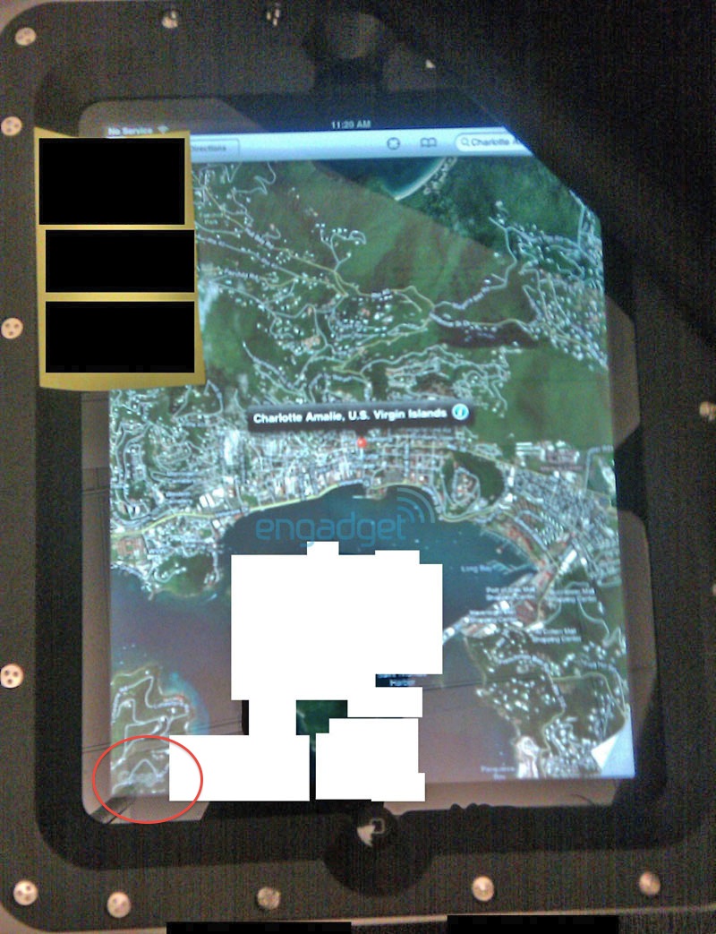 That is definitely Google Maps because if you look closely at the bottom-left of the Screen... you can see the logo. But the top "shadow"looks like a speaker slit. Maybe those leaked iSlate bezels were actually real....I got one of the images and took it to photoshop and played around with the "Shadow/Highlight" setting to reveal more detail in the shadow areas and there seems to be another circular indentation at the top...maybe another home button? Camera? Maybe I'm just seeing things haha but it's interesting. http://i46.tinypic.com/30bgq46.jpg