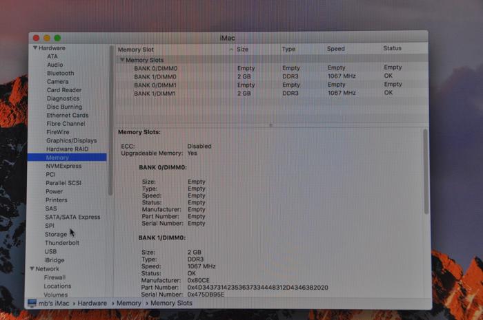 Memory: 8GB RAM (replaced with 4GB RAM for more checking purposes) 204-pin PC3-8500 (1066 MHz) DDR3 SO-DIMM