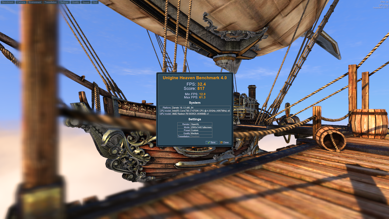 I tried installing the Heaven Benchmark to see what effect this had on the temperatures. The temperature seems to go to a similar level whether I run the benchmark on the default (medium) settings, or on ultra.