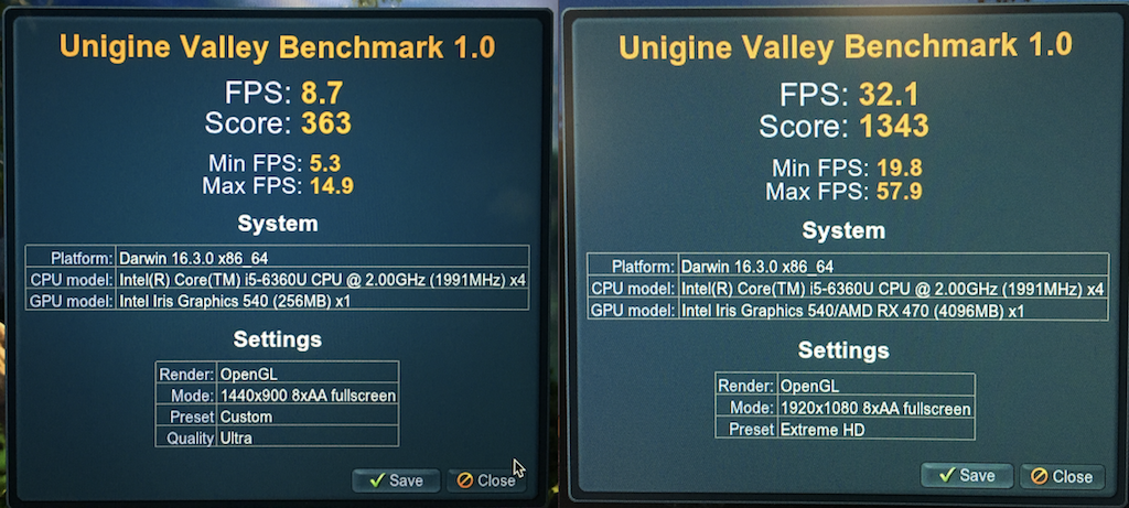I would be impressed if it worked natively with macOS. I am interested in the Akitio Node as well, but curious how any of this works with the dGPU 15" as you would be seeing essentially three graphics sources (iGPU, dGPU & eGPU) at that point.