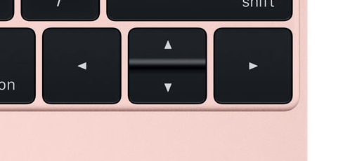 It's not missing, that's just how the modern Apple keyboard layout is. Left/Right arrow keys are 2x larger than the Up/Down keys. See the 12" MacBook and Magic Keyboard.