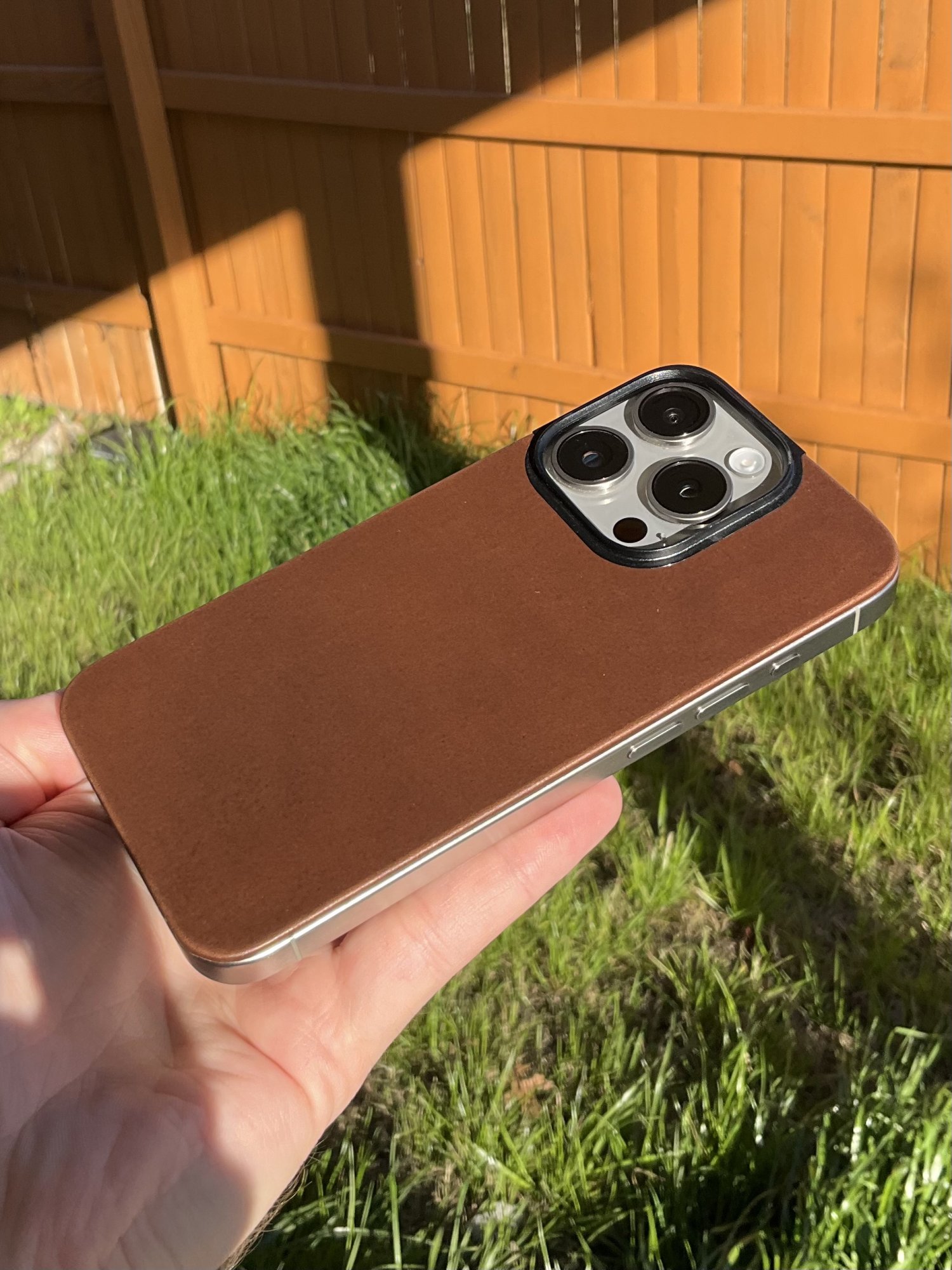 I started with a Mujjo for my iP15p. I'd had one on my Xr since launch and had been quite happy with it, so it seemed like a no brainer. The current ones are garbage. One review on Amazon sums it up best: it feels like you are holding a deck of cards. It doesn't feel like leather. It's too "squared" off. I came to hate... and I do mean HATE... the aluminum ring around the camera. It's nicked all to heck. I also disliked having the closed bottom. The one on my Xr was open. The MagSafe strength is also horribly weak. I've since gotten a Bullstrap and this is an upgrade is just about every metric. One of my early impressions was that it was a bit slippery, but I expected that would change as it wore in, and it has. No concerns there at all. I also felt the buttons were too flush to the case. I still feel that way, but I've gotten more used to it. In fact, I haven't really given it any thought in some time now.