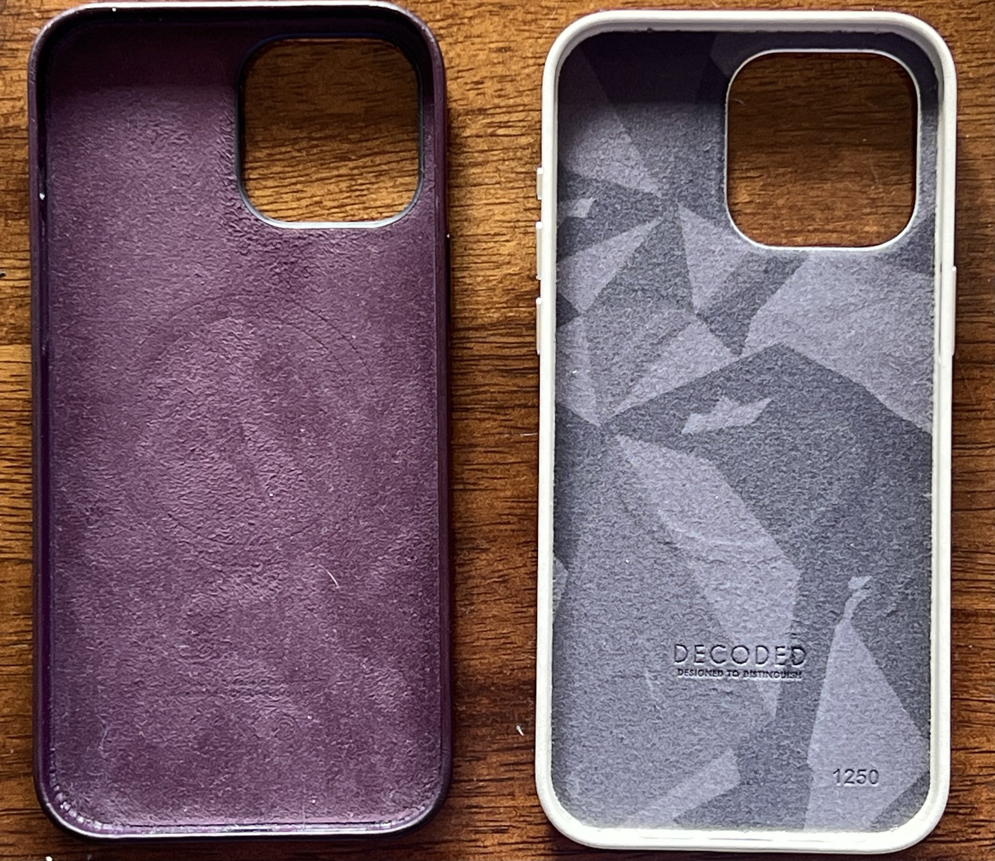 How does the weight compare? Any chance for weighing them? Thanks.I got a Decoded case this year. Time will tell how it will wear over time but I really like it. Def comparable to the apple leather cases. Seen next to my old 13 Pro Max case. And it’s $4 cheaper than that FineLinen trash!