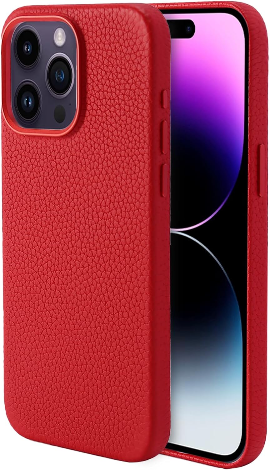 Zoof Genuine Leather Case for iPhone 15 Pro Max (6.7 inch) Top Litchi Grain Leather Magnetic Phone Case- Compatible with Magsafe - Red