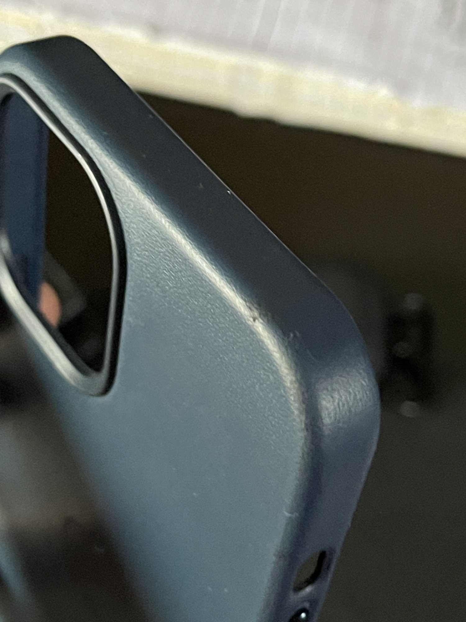 I’ve been trying to find pictures of how the Baltic blue leather case has been aging for everyone, but since I can’t see anything on that color, I thought I’ll share my experience. I switched to a 12 Pro Max from a 7+. Had the black leather case on my 7+ and I loved it. I got the Baltic blue leather case on December 3rd, have been using it ever since. I realized it felt different as soon as I started using it. Felt smoother, not necessarily better or worse than my 7+. I figured it might be due to changes in manufacturing process/flat sides. I’m not a leather expert or anything, but I’m happy with the way it has turned out so far. I’ve dropped the phone once, and it is a left a little scrape on the top (last picture), other than that, the sides on the case and the front lip have darkened (they look like dark blue rather than black). It’s picked up a few scrapes here and there, adding to the character of the case. I don’t baby the case, but I don’t use it too roughly either. I haven’t used any wipes or anything, I just wipe it off on my jeans or any cloth if it picks up smudges. Sometimes, I might place it on a slightly damp or wet surface while taking a shower or something, but I wipe it off soon after. What do you guys think? First picture is a picture of it from day 1. View attachment 1713853View attachment 1713854View attachment 1713855View attachment 1713856View attachment 1713857View attachment 1713858View attachment 1713859