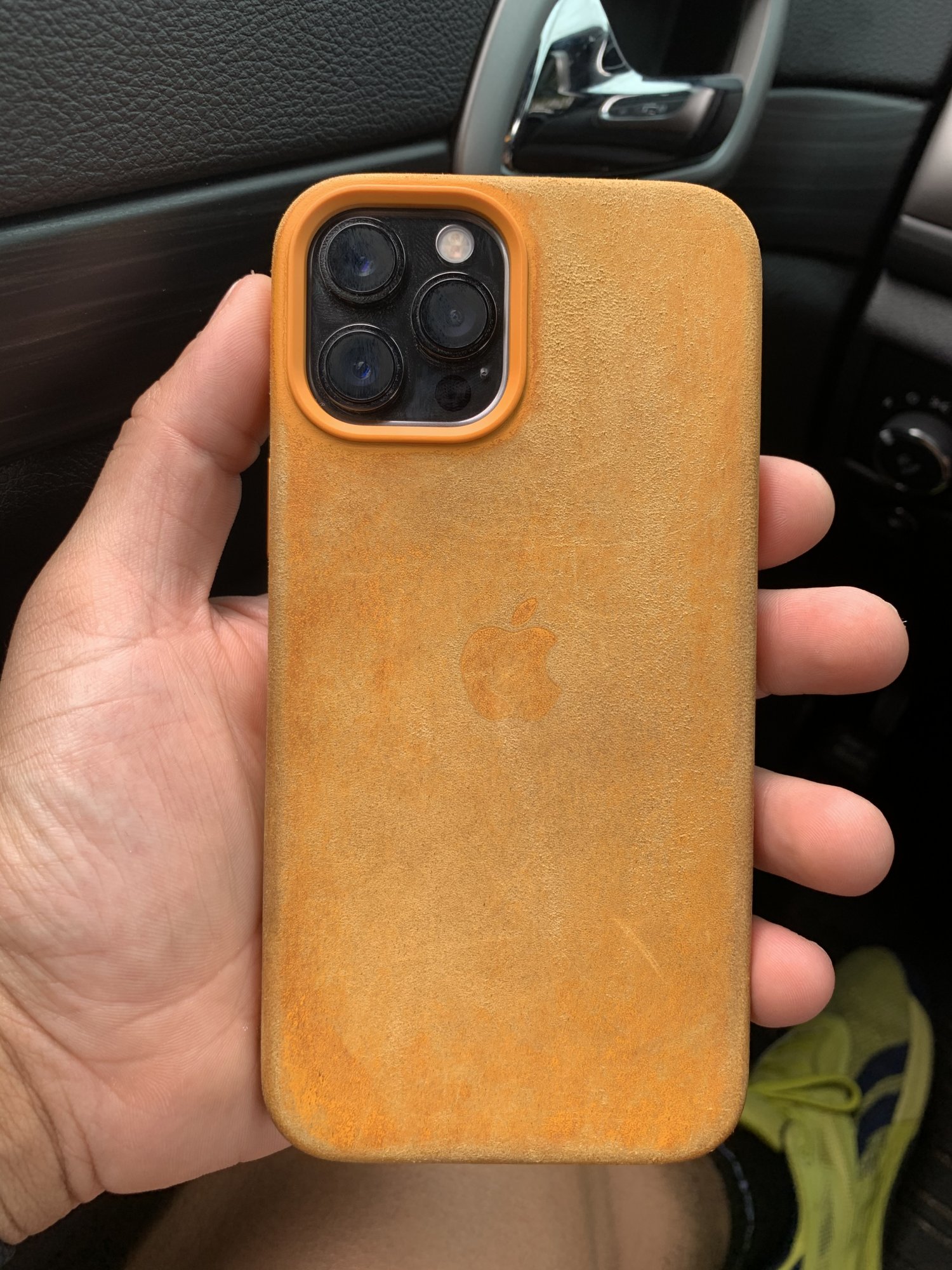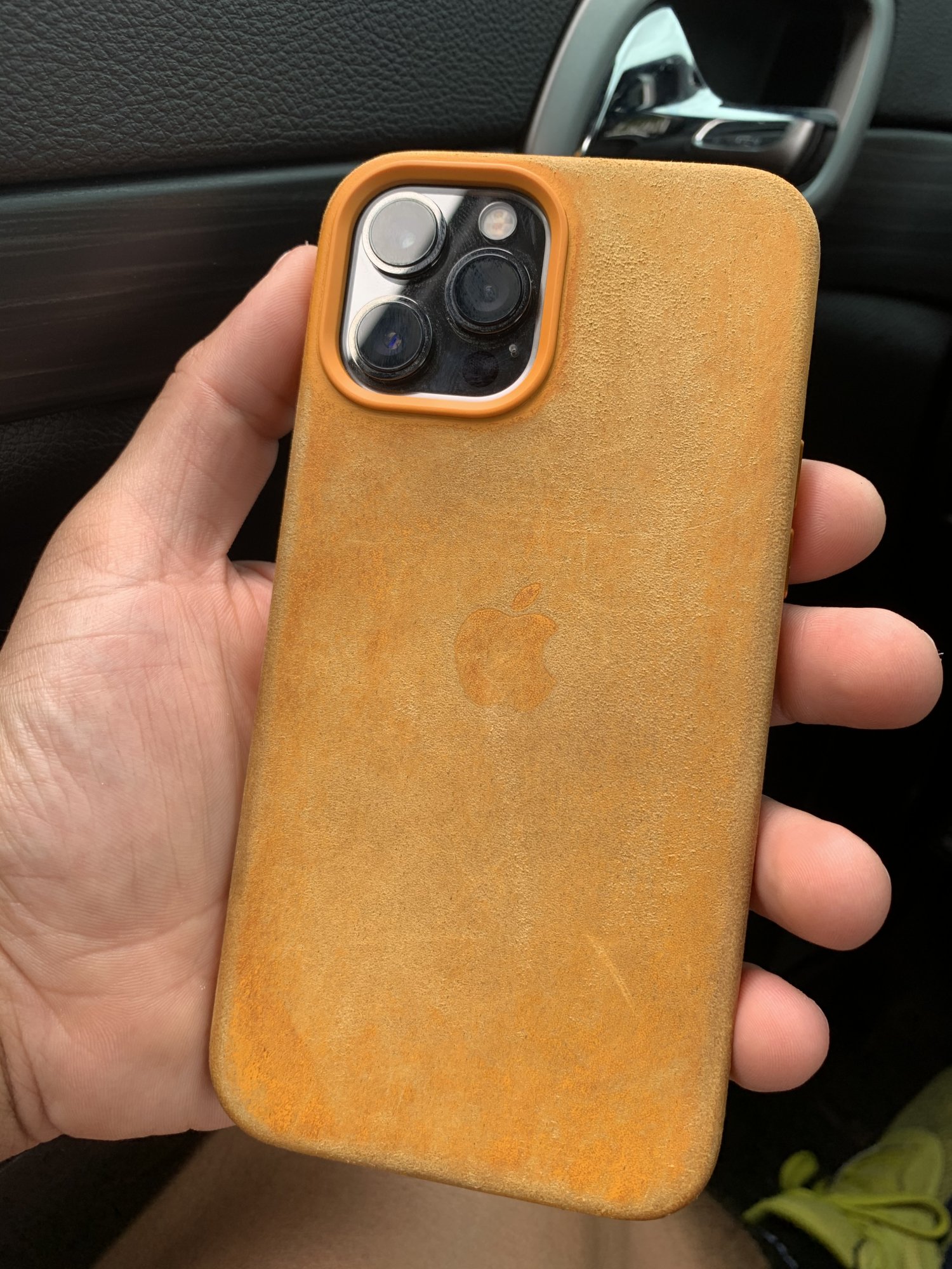 Mine looks exactly the same, strange how the sides are getting darker but not the back, leather cases this year seem to be getting darker only on the sides.got it the day it was available for 12 pro, been using it maybe like 70% of the time