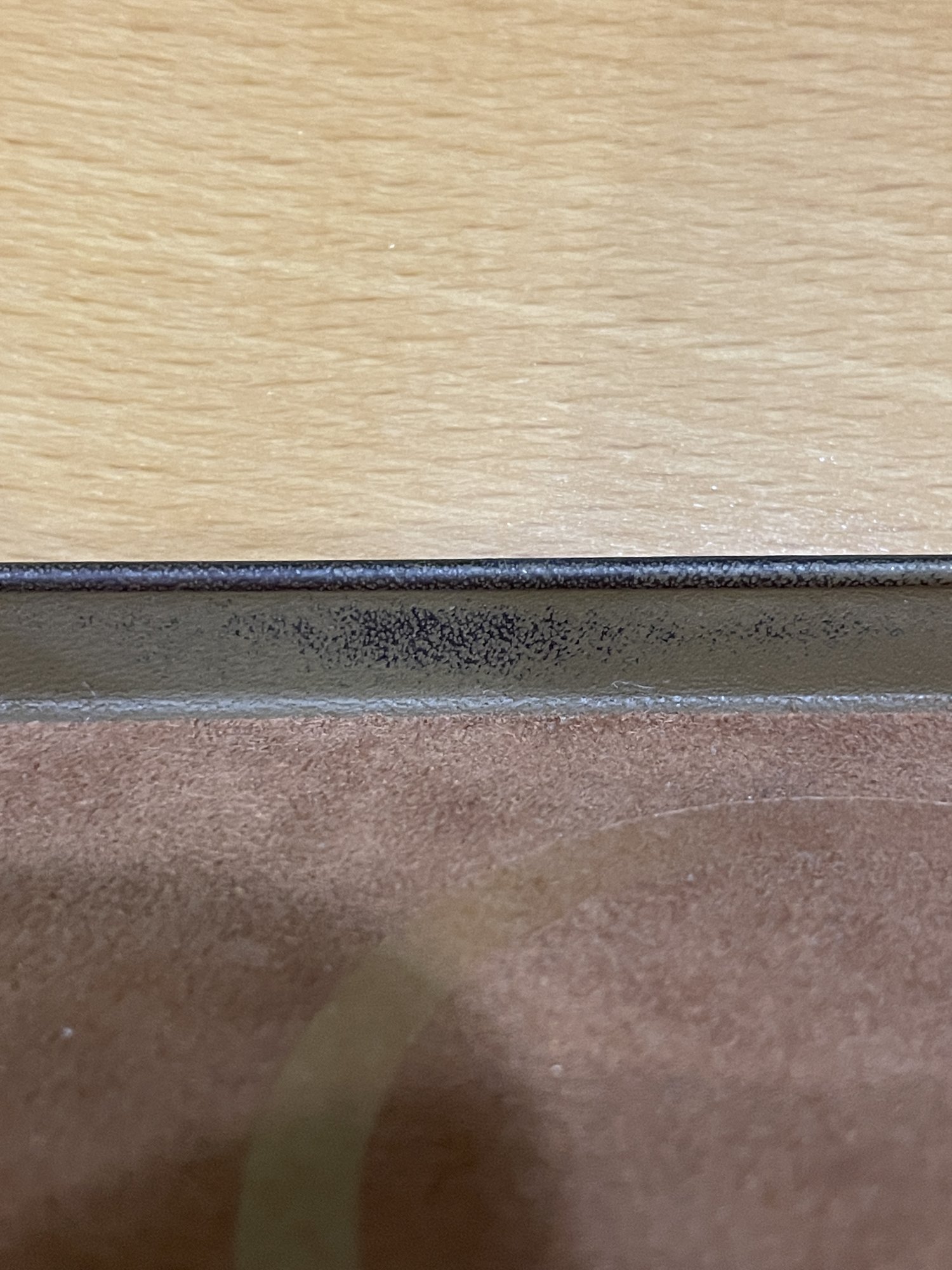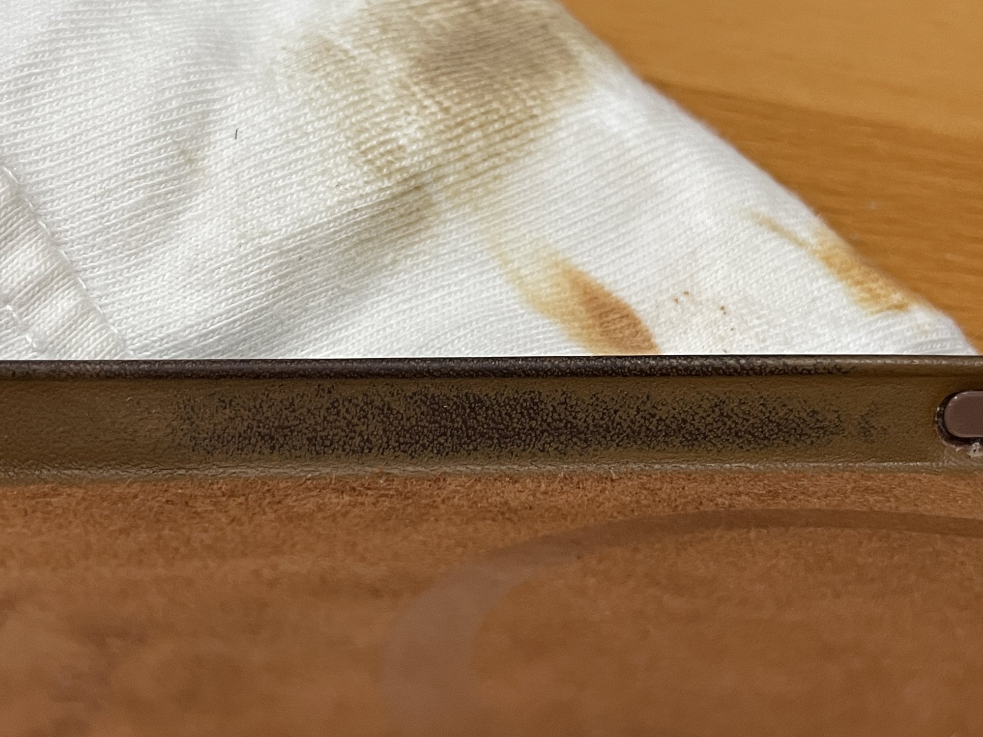 The 11 pro case did the samerubbed the inside edge of the saddle brown case a bit with acetone. took off some paint and turned dark...