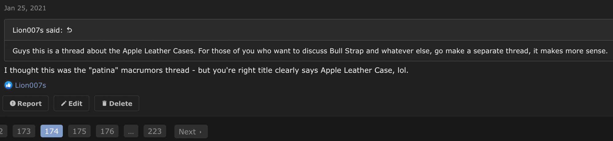 I thought this was the "patina" macrumors thread - but you're right title clearly says Apple Leather Case, lol.forums.macrumors.com