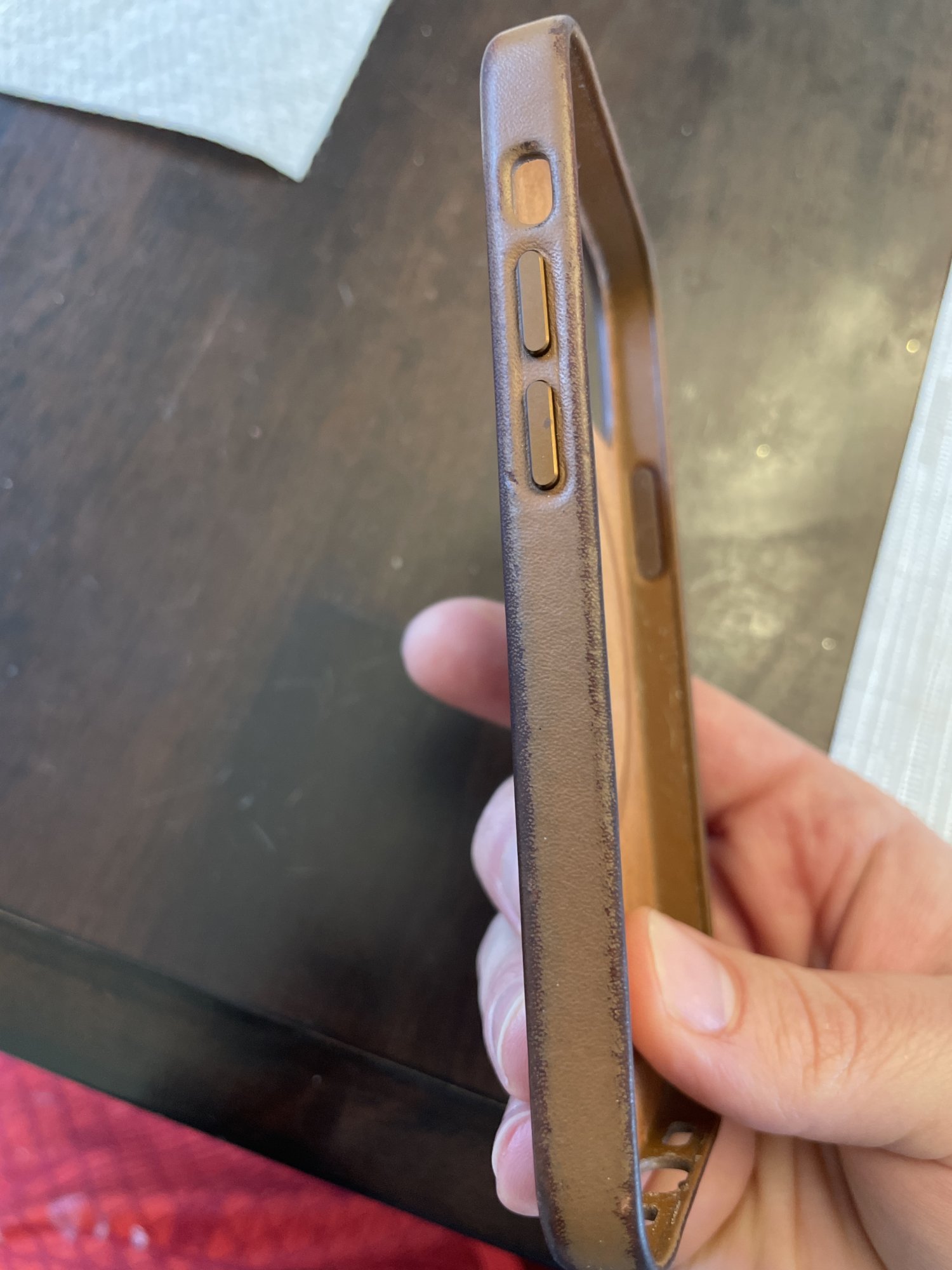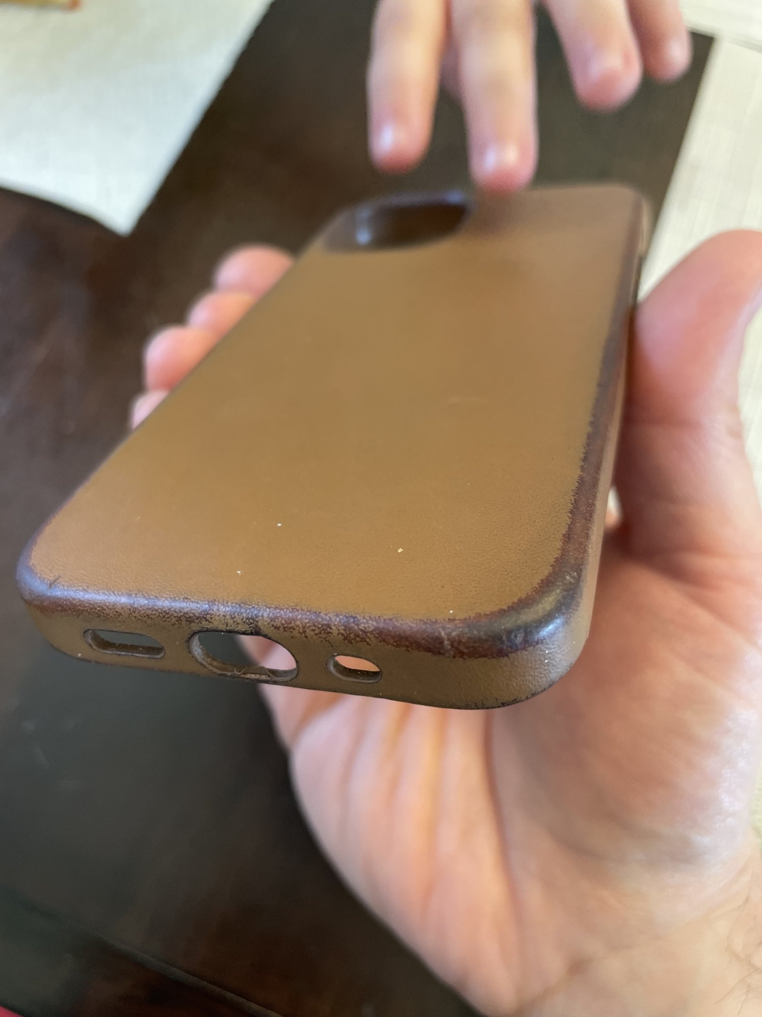 I have the Nomad rustic brown on the way (non-MagSafe). I’m currently using their natural leather case on my 12, but I liked how the brown was aging on my mini. So, ordered the brown for the 12.Nice. My Pacific Blue looks pretty much the same since day 1 in Nov. 2 barely noticeable black spots on the back edge - one below volume down and power button. Makes sense, my palm hits below the vol. button, middle, ring fingers below power.
