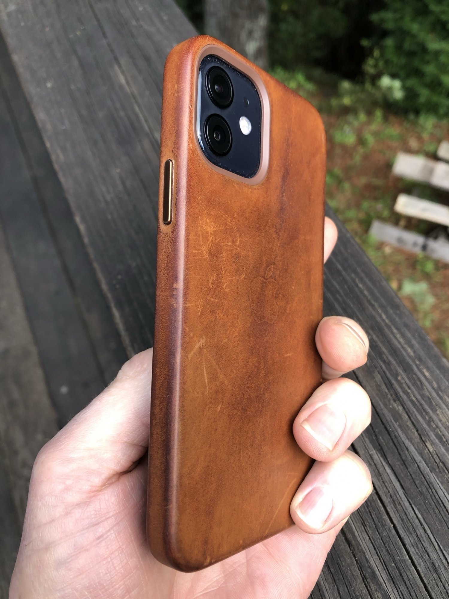My iPhone 12 Pro Max Saddle Brown Apple leather case after a week. Helped with Obenauf’s leather Cleanit to wipes the coating, and then a treatment with Obenauf’s Heavy Duty leather oil, it feels good and looks good. Now time will tell how it ages.. NO SANDPAPPER USED 😁