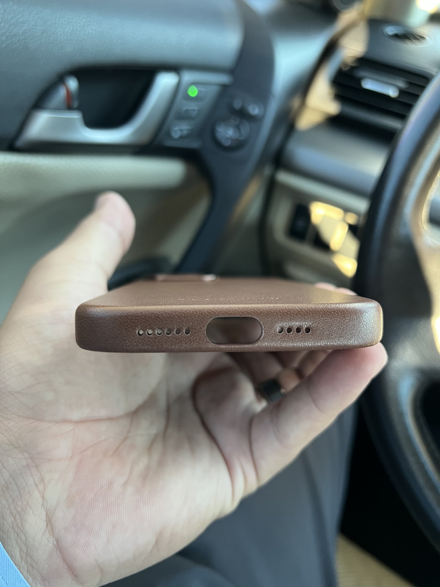 Looks nice! They even have individual speaker holes rather than a slot in the Apple leather cases.I agree, if you want Nomad quality Horween leather check this one out. Full wrapped precise cutouts. I’m extremely surprised with how good this case looks $50 at Best Buy. I think I’ll be returning my golden brown apple leather case. For those looking for nice brown leather case with fully body protection and Nomad quality check this one out. You will not be disappointed.