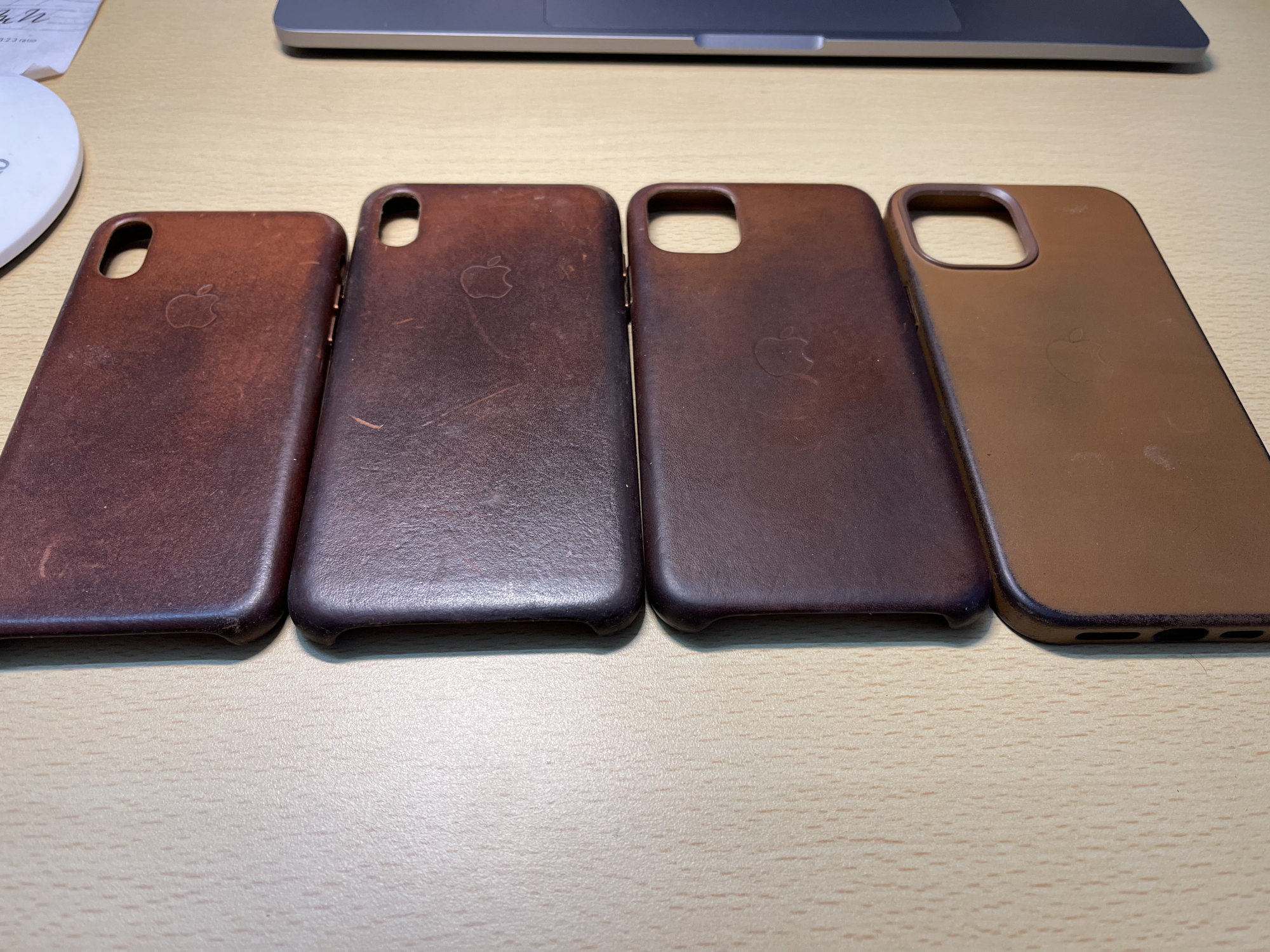 Thanks for posting this. Perfect example of the difference between worn paint and actual worn leather.A few pics of my old cases from X onwards. I think apple has dropped the ball on 12 pro leather cases. It looks significantly different than the previous ones. I'll miss the saddle brown colour that I loved since the beginning. This year's colour choices seems extremely weird.