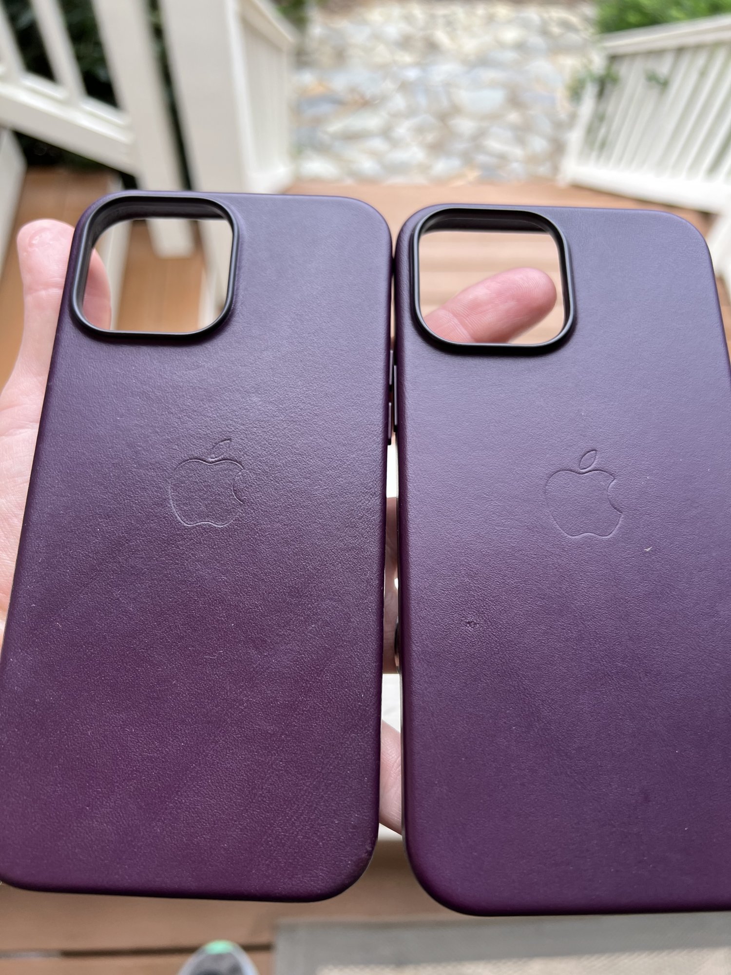 Any leather experts know if those lines are “natural wrinkles” or a manufacturing imperfection?Snapped some pictures of my 2 week old dark cherry case versus a case of the same color that has not been used and is being returned. You can see that the left case (the used one) is starting to patina, as it is shinier with much more grip. Love the character of the leather with the natural wrinkles and marks on the top grain.
