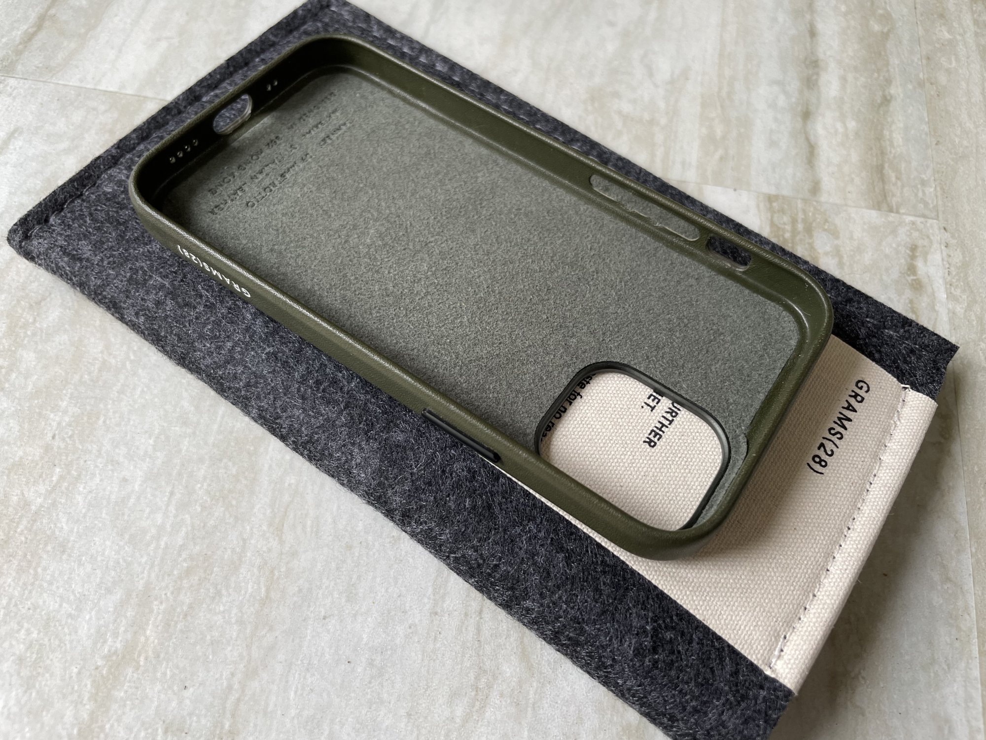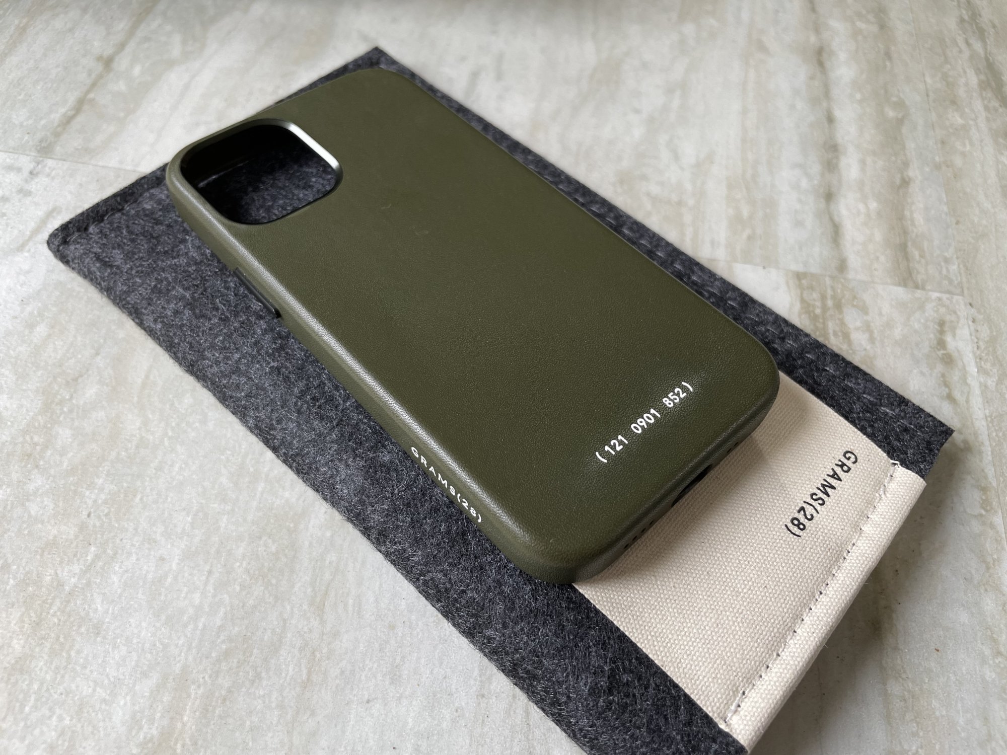 That white side logo with prison style numbers on the back is just about as dumb as you can get. That is a deal killer for me! Whoever thought of that should be fired from Grams28.I received my Grams28 Olive Leather iPhone 12 Mini case today. First impressions are very good. It is nearly the same size as the Apple case, you’d have to have the two side by side to notice the grams is a hair thicker. The leather seems very nice, and smells of actual leather. My wife said it smells like the Coach store. It is a snug fit and feels nice in the hand. The buttons protrude a bit more than the Apple case, and have slightly sharp edges, but they are clicky. I’m not a fan of the white debossed logo, would be less annoying if it were just debossed without the paint. All the cutouts are nice and crisp, with no lose edges. The magnets are present, but I don’t think as strong as the Apple case. The wallet doesn’t fit as tight, but hard to tell if it’s magnets or just a difference in leather material that the lateral sticking force isn’t as strong on this case (it’s easier to slide the wallet off this case than my Apple leather case).