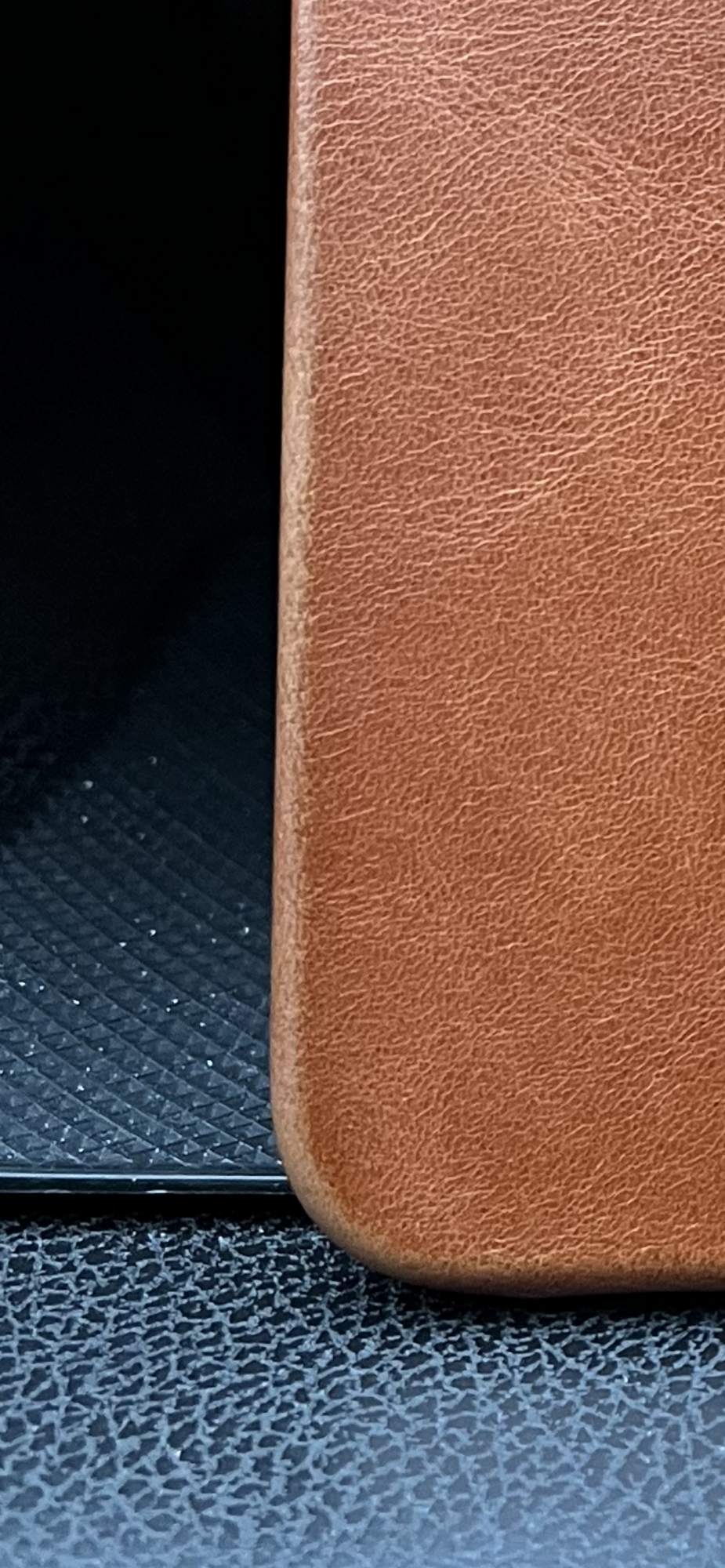 Most leather cases I’ve used (including Apple’s) had turned a little sticky from hand oil over time but I am not feeling any of that for this case yet. Yes, texture did change from soft grainy to soft smooth, but not sticky.