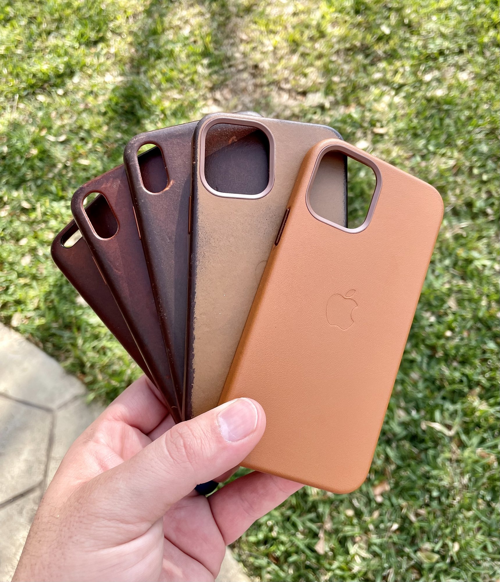 That patina on the andar case is beautiful! It darkened so muchDecided to finally give bullstrap a try, so here it is brand spankin' new next to my camel tan Andar case(~5 months of usage) and me dusty ole saddle brown magsafe wallet that I hardly use any more. The bullstrap case does not smell nearly as strong or good as any of my previous leather cases did at first, but it looks pretty though the corners do feel and look dry af.