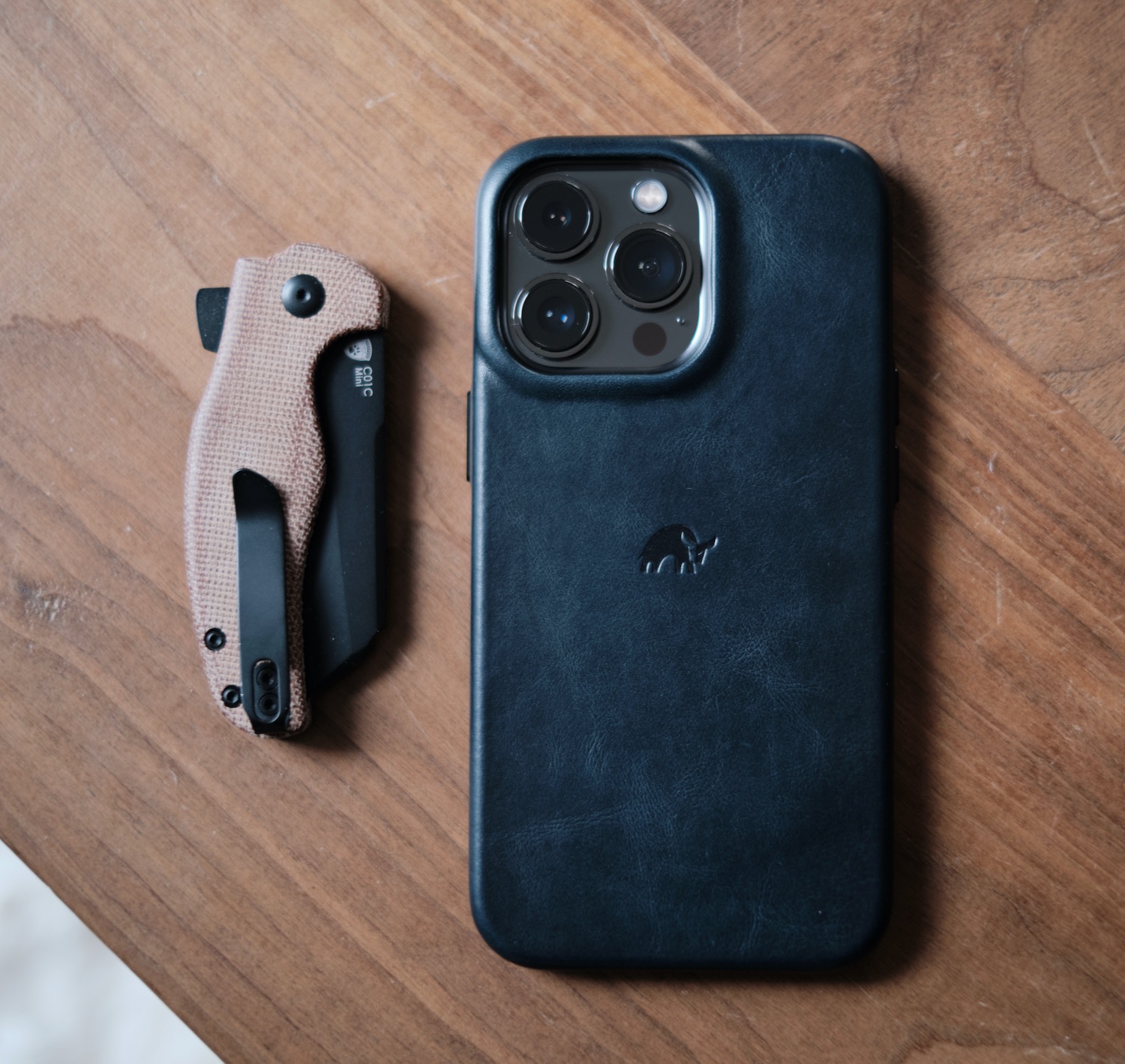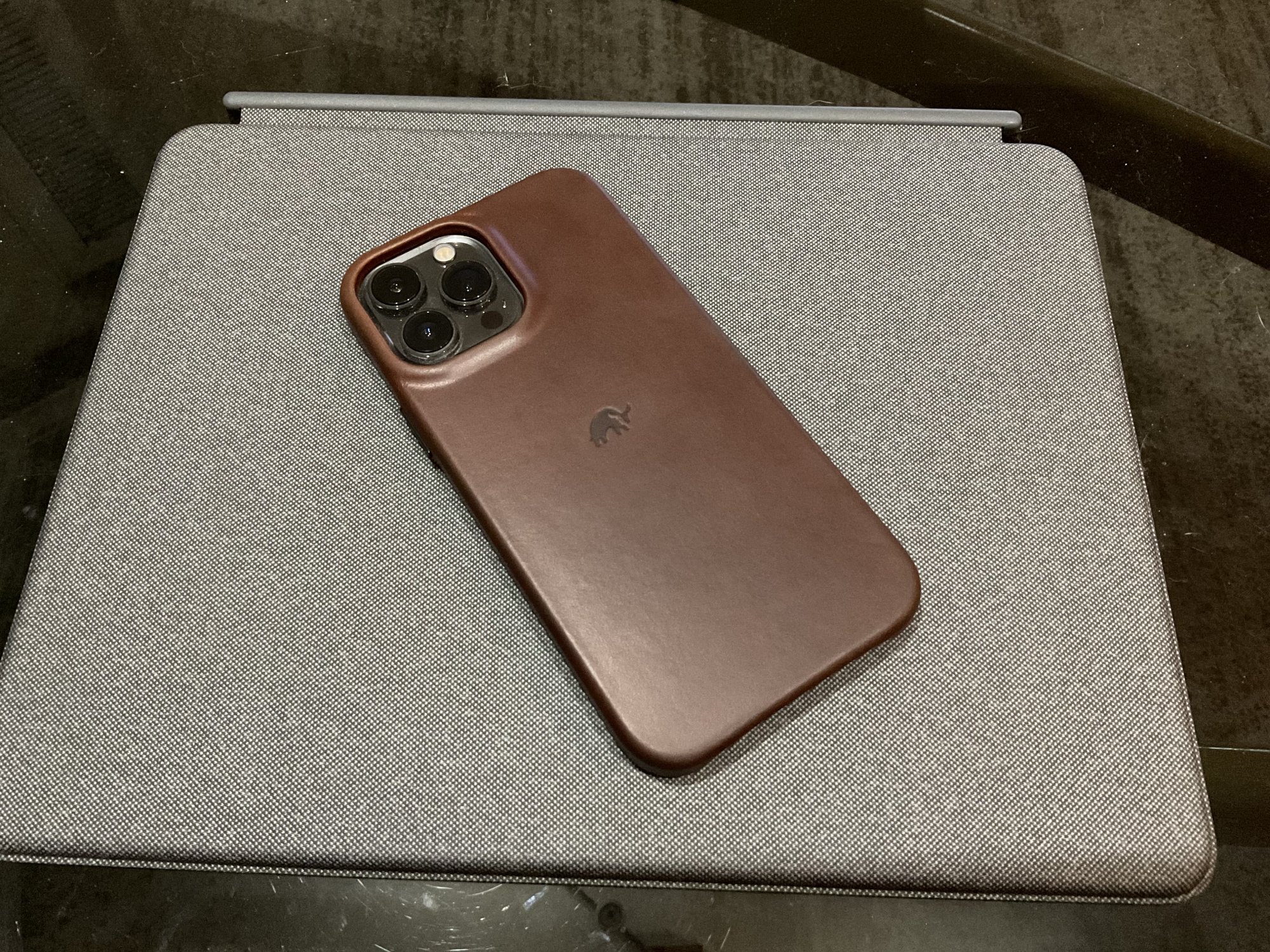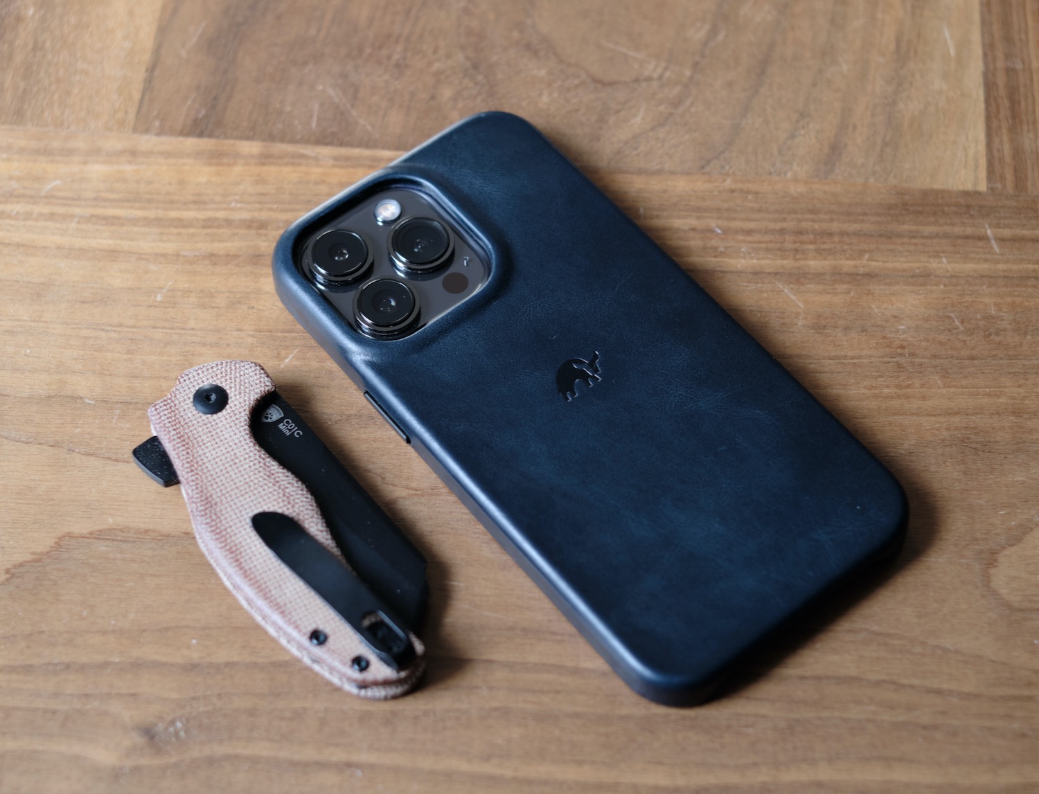 My Bullstrap ocean and iP13Pro. I like this case a lot as its got gorgeous leather and color, but the corners pop out all the time.