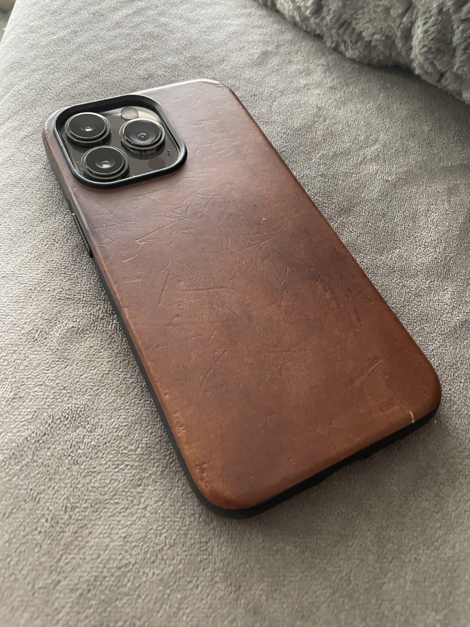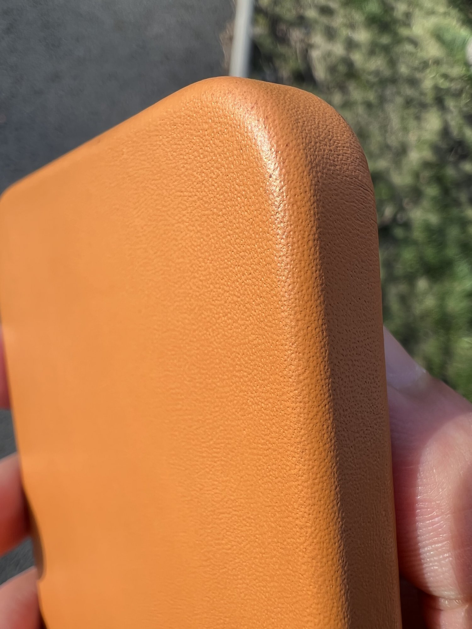 The leather feels and smells better. In years past, the buttons and the sharp cutouts on the bottom were dealbreakers for me but they’ve improved on both for the 13s. The two tone black/brown look has really grown on me and the black portion has a matte finish that feels very much like the leather.How does the Nomad case compare to the official leather case in your experience?