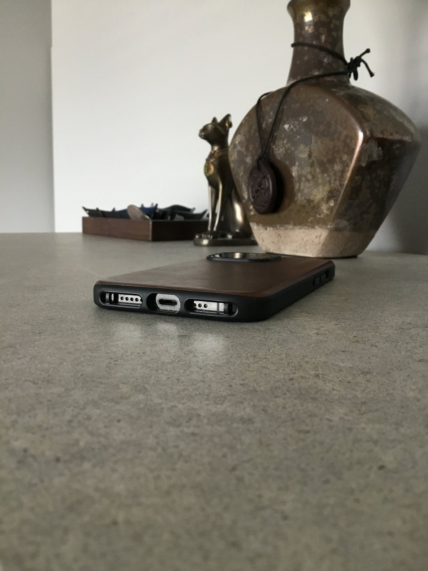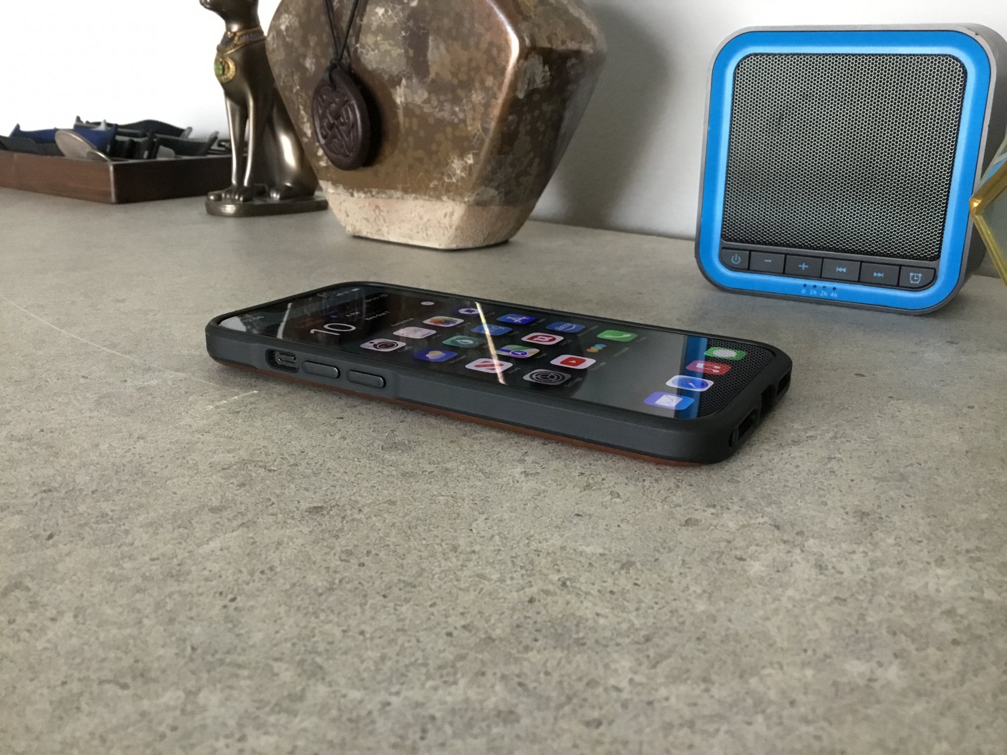 The logo on the back creates a pivot point when it’s resting on a surface. I don’t find myself using the phone that way too terribly often so not an issue for me but I know it would bother some.