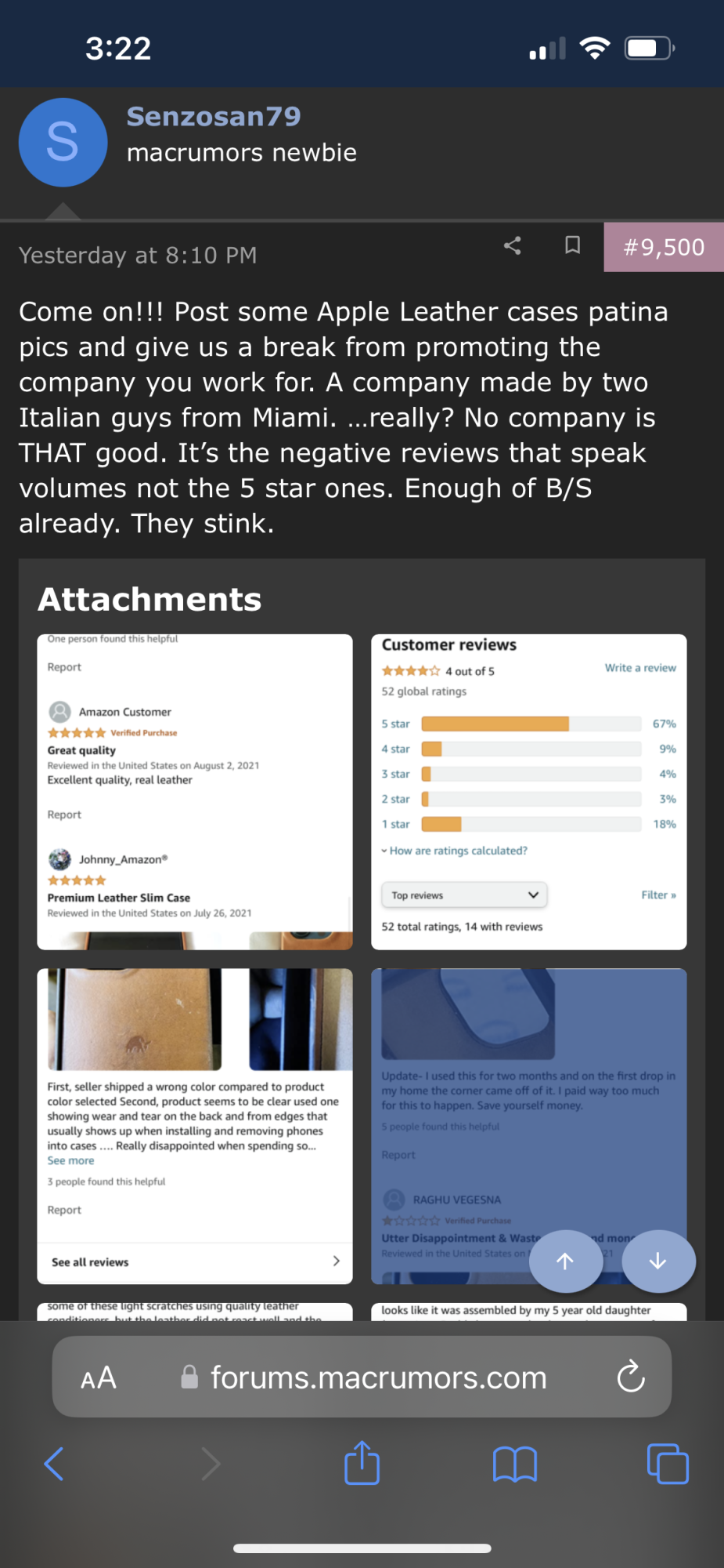 Apple leather cases don’t even patina correctly. Now how they used to. You obviously don’t own a Bullstrap. The leather quality is top notch. Apple leather is full of paint that prevents a decent patina.Come on!!! Post some Apple Leather cases patina pics and give us a break from promoting the company you work for. A company made by two Italian guys from Miami. …really? No company is THAT good. It’s the negative reviews that speak volumes not the 5 star ones. Enough of B/S already. They stink.