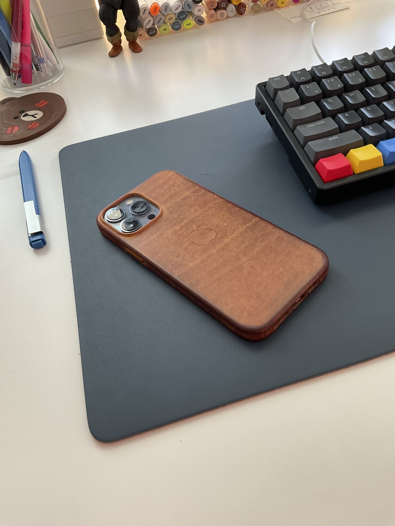 I know it's just opinion and protection is important but this would look so much sleeker without any camera protector in that black leather case! The bare camera lenses would look great and the polished SS would bling like crazyI think the red and gray looks good together. As it patinas I’d imagine it would go from darker gray to