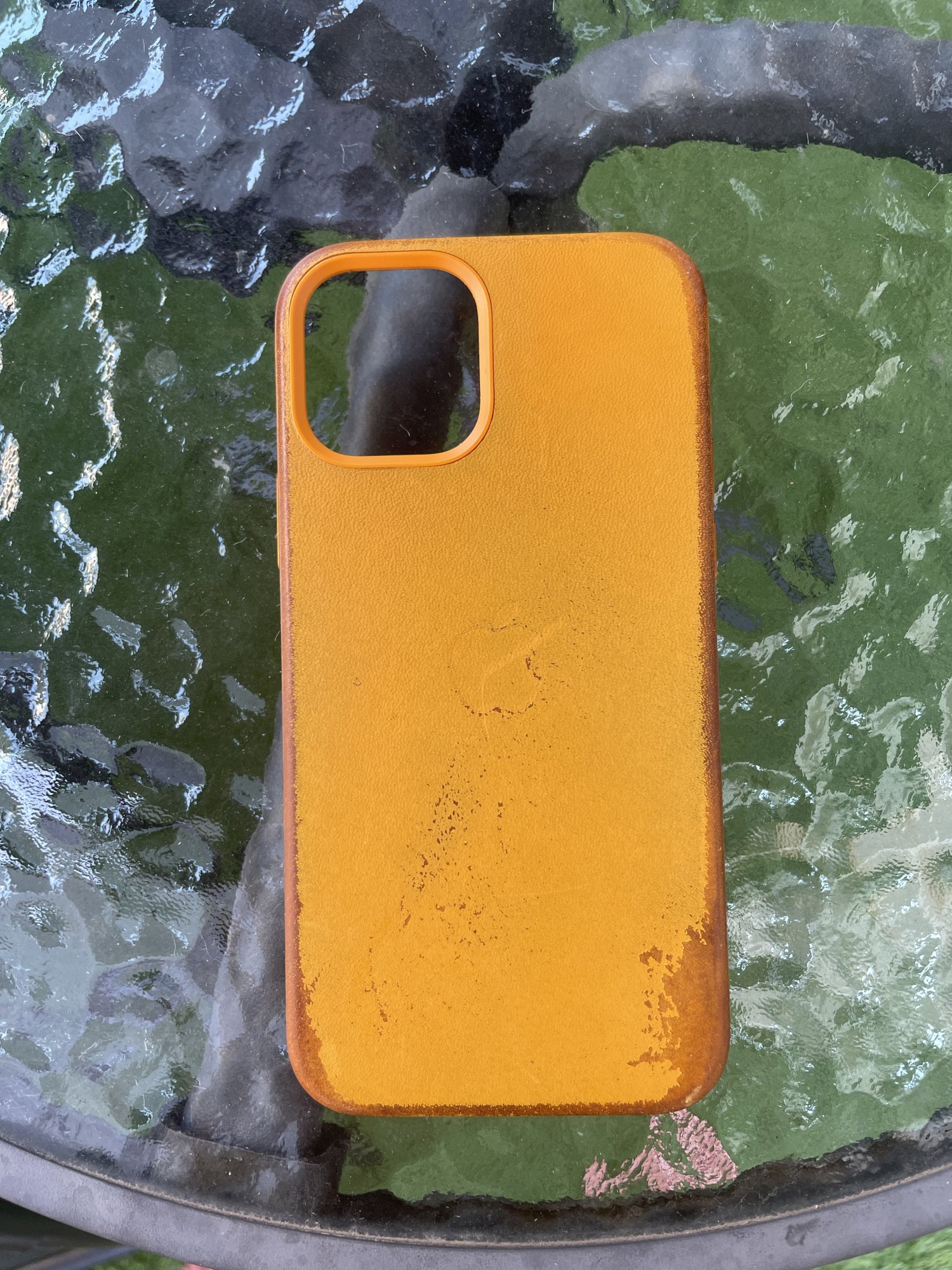 Never use water let alone soapy water on leather. You are literally ruining itDo you have sticky/tacky apple leather case ?