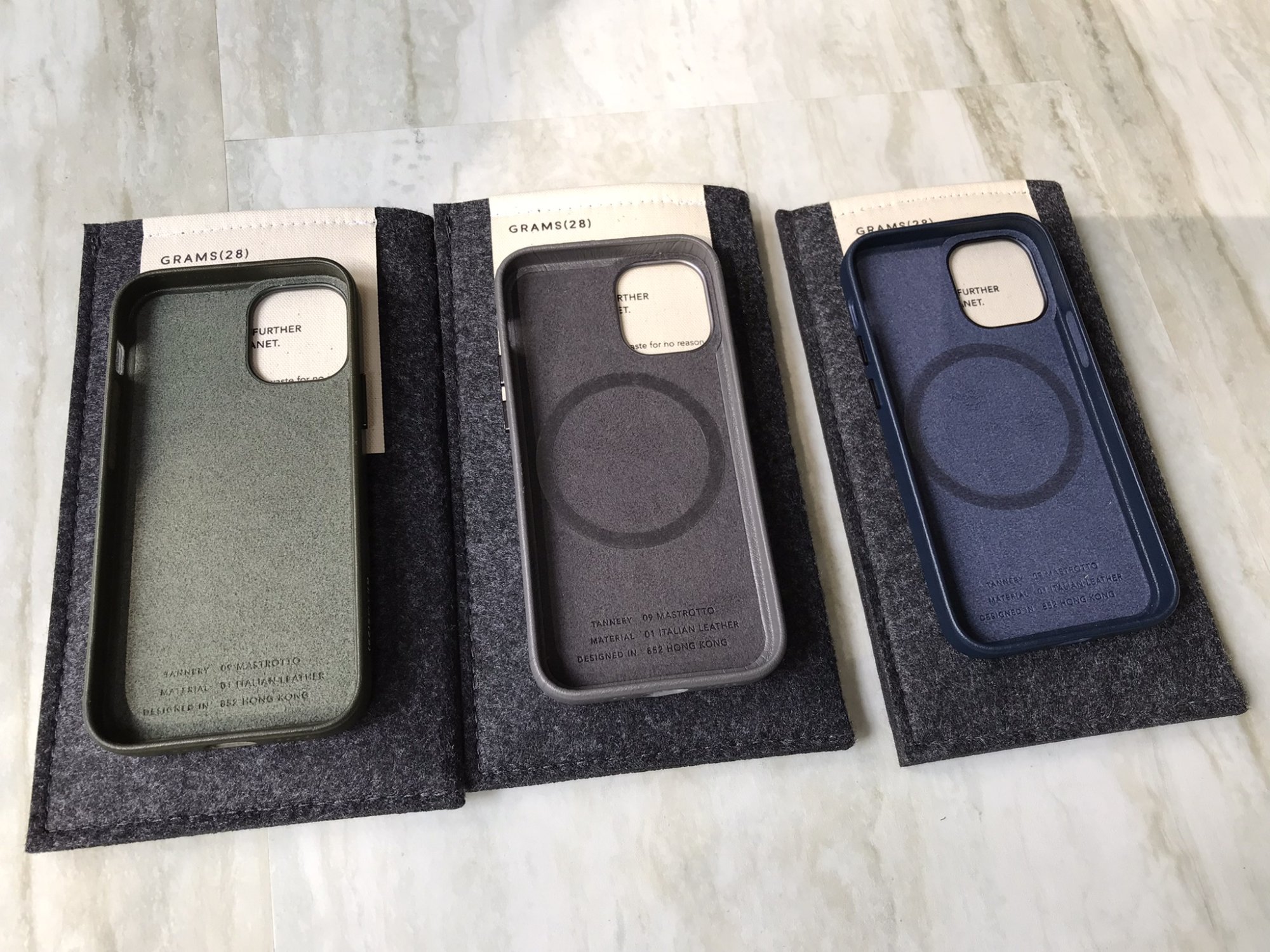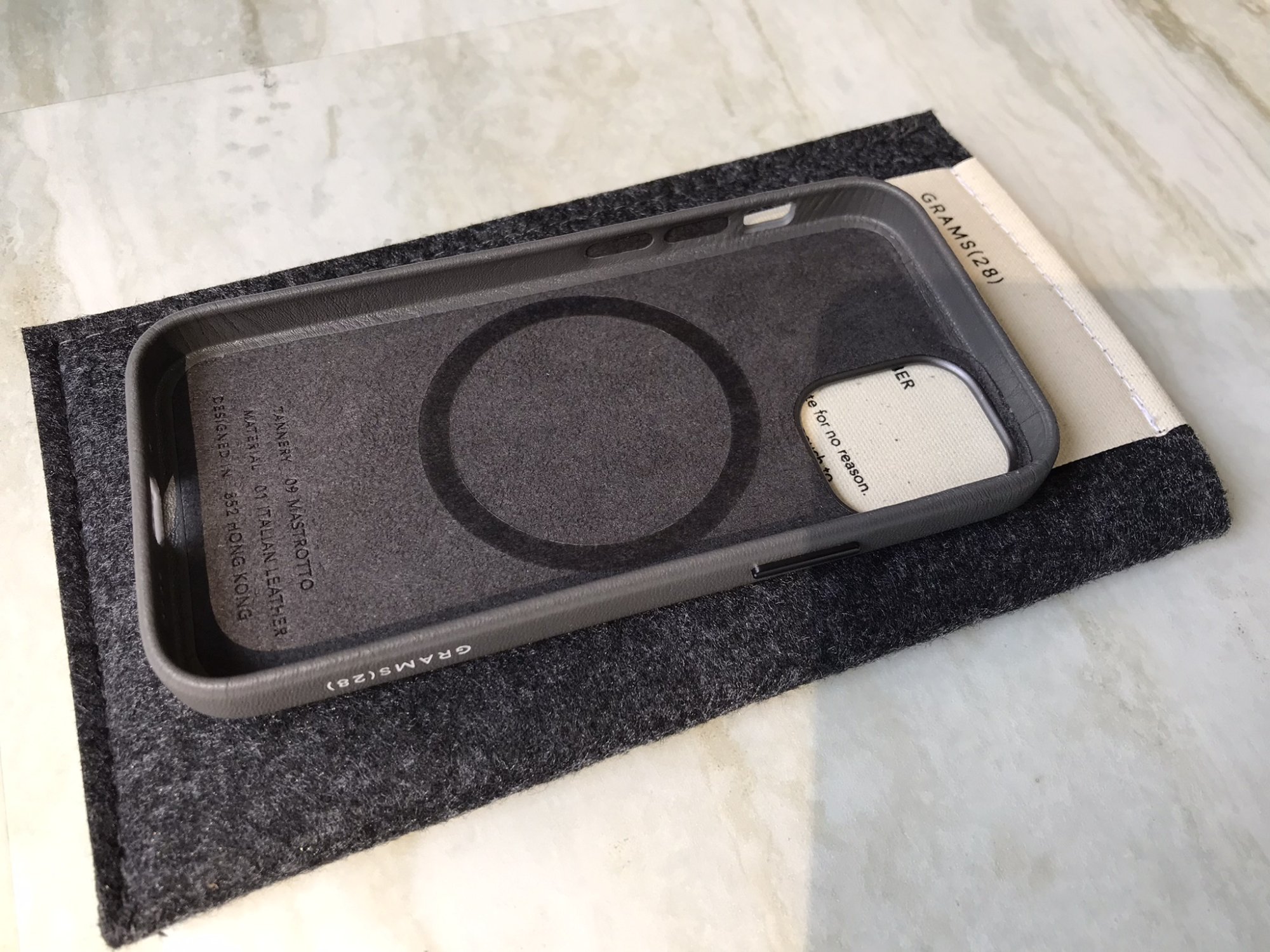 I received my Grams28 Olive Leather iPhone 12 Mini case today. First impressions are very good. It is nearly the same size as the Apple case, you’d have to have the two side by side to notice the grams is a hair thicker. The leather seems very nice, and smells of actual leather. My wife said it smells like the Coach store. It is a snug fit and feels nice in the hand. The buttons protrude a bit more than the Apple case, and have slightly sharp edges, but they are clicky. I’m not a fan of the white debossed logo, would be less annoying if it were just debossed without the paint. All the cutouts are nice and crisp, with no lose edges. The magnets are present, but I don’t think as strong as the Apple case. The wallet doesn’t fit as tight, but hard to tell if it’s magnets or just a difference in leather material that the lateral sticking force isn’t as strong on this case (it’s easier to slide the wallet off this case than my Apple leather case).
