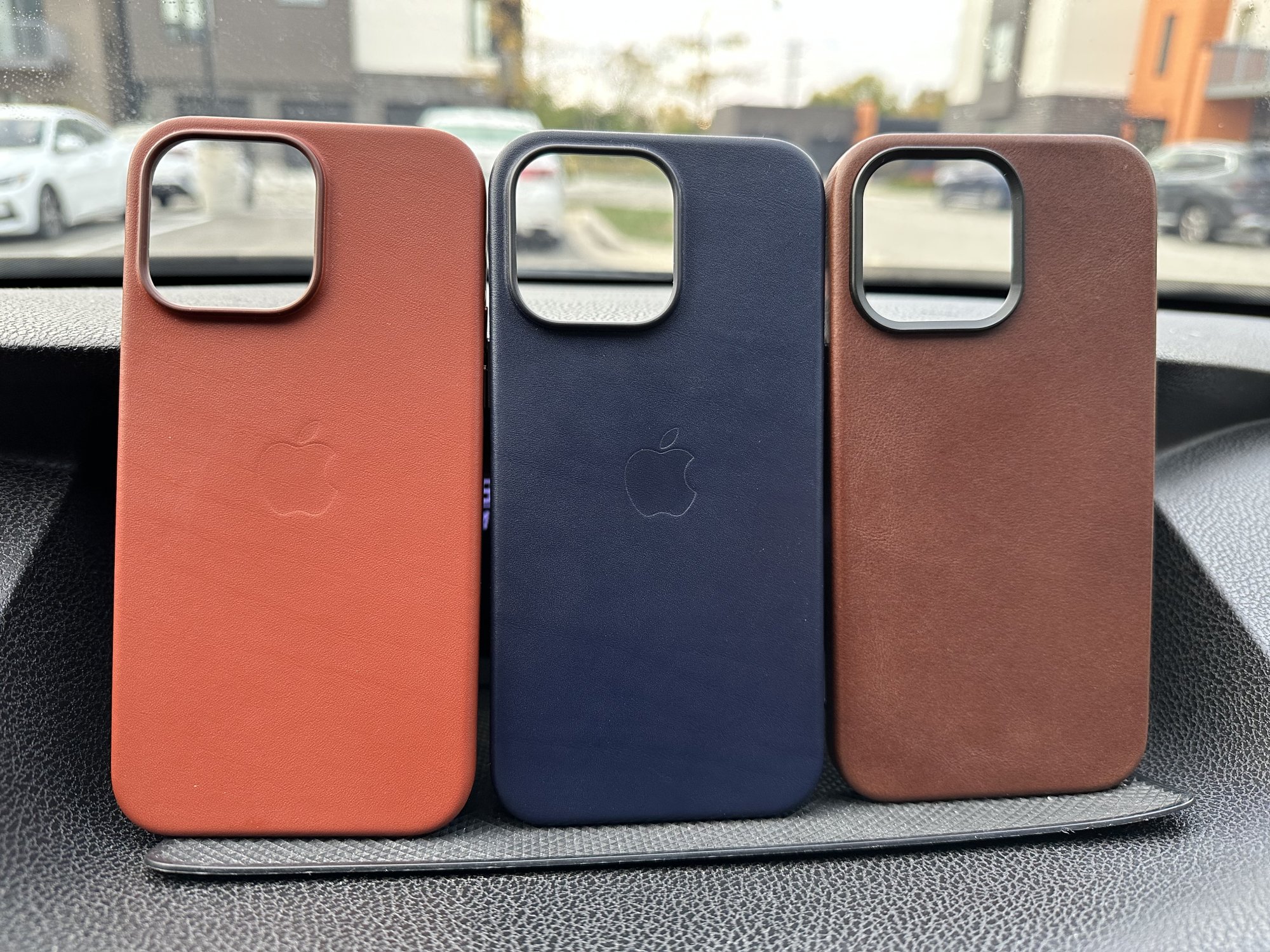 here are pics of my Andar and Apple leather combos. i couldn’t reproduce that light gray color in natural lighting like the other user. still a very light milk chocolate brown in my opinion. also, the Andar logo stamp on the side is a bit crooked.