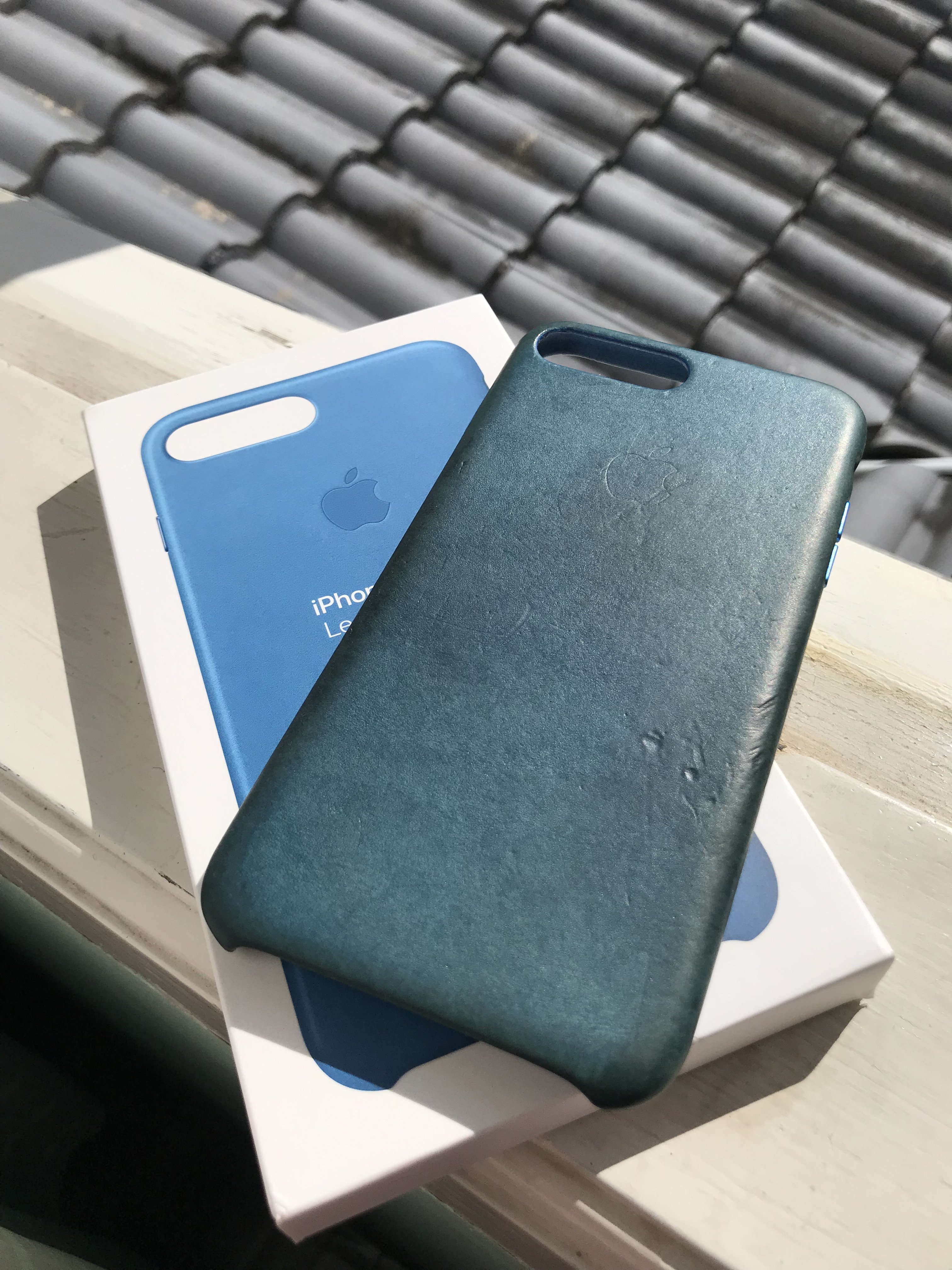 I had this problem with my cornflower colored case. Apple swapped it but I was within the 14 day return period. Not sure if this would be covered under warranty. Maybe someone else can give their take?