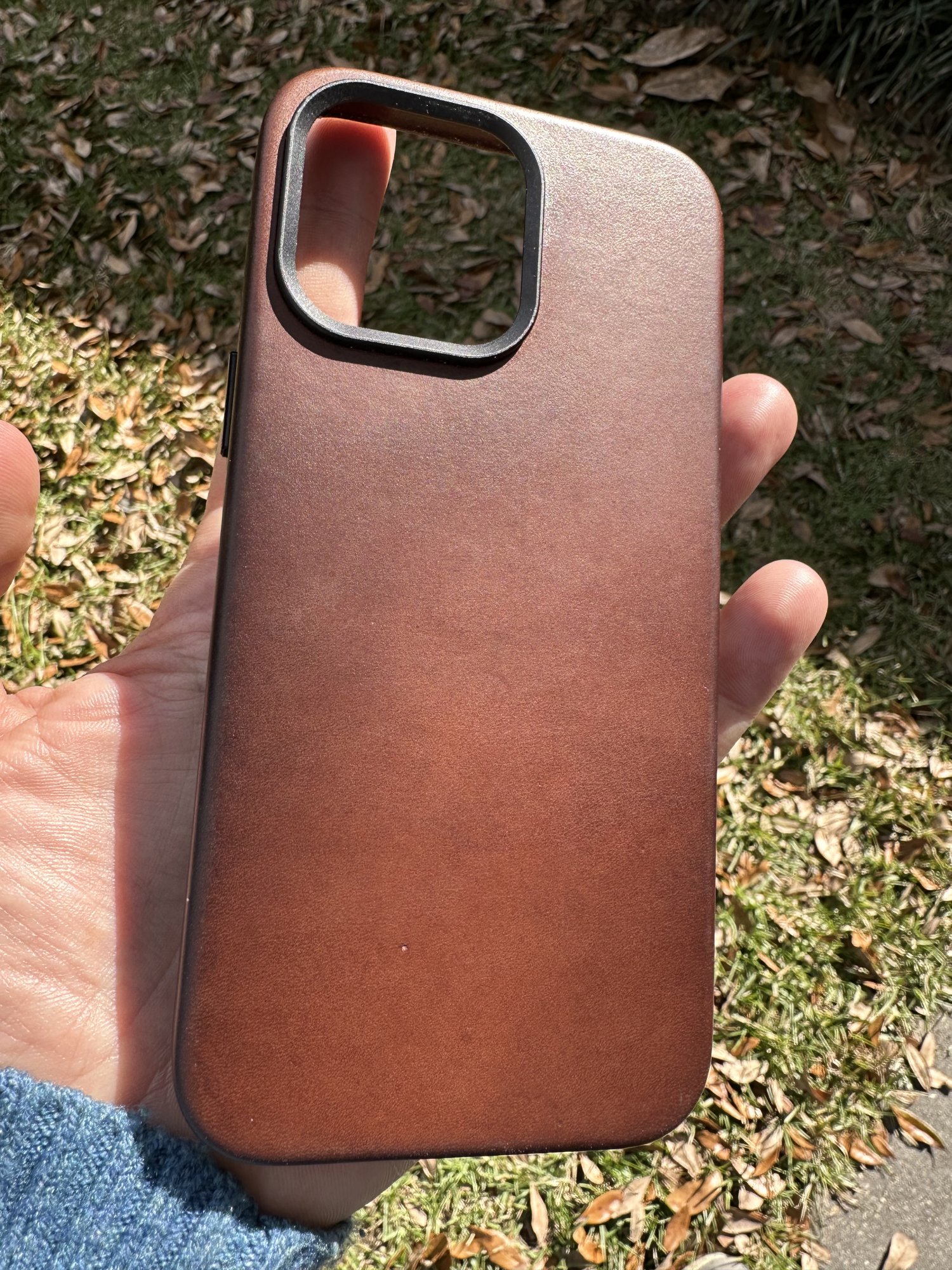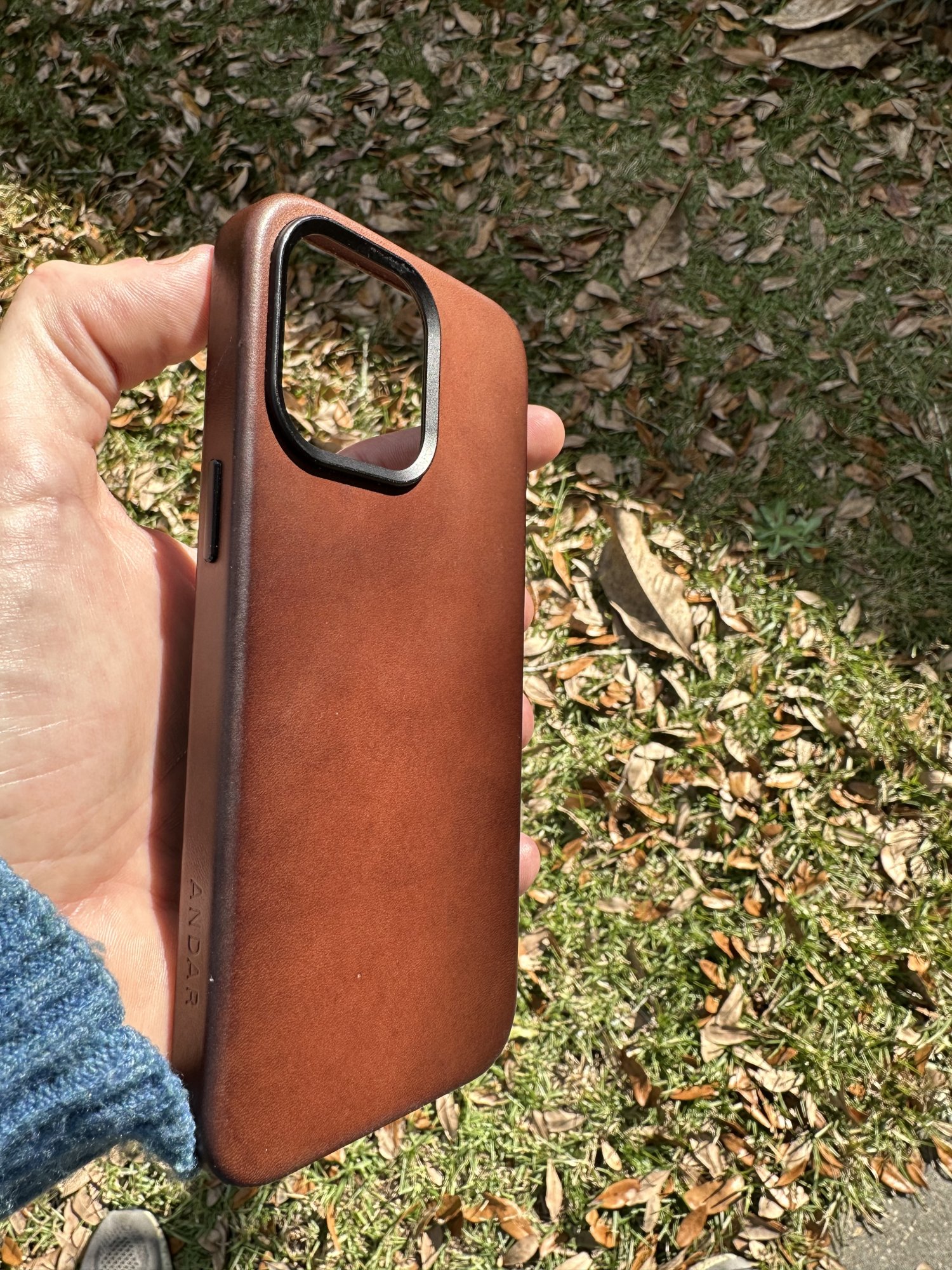 That looks really nice! Definitely one of the best cases this year. Seems like brown is the most popular color judging by the fact that it always sells out before all the others. The case would be perfect if the camera ring were leatherAndar 14 Pro Max case in Brown… about 4 weeks of daily use IIRC