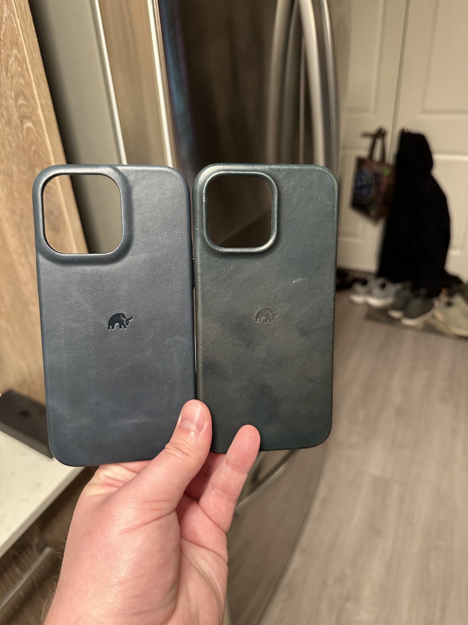 I hate to say it, but my not so new Bullstrap Ocean replacement has once again started going green again. I will try to take a photo tomorrow in day light as it's dark now at 11pm on the west coast. It is definitely not the blue shade as when I first received the replacement two months ago now. Back to my Apple leather Ink I think...Just received my replacement Bullstrap 14 Pro Max Ocean case. Check out the differences from the first one I received from the pre order. Camera cut out also is a bit different. New one on the left, old one on the right. Unfortunately, I think this will be my last Bullstrap unless they fix shipping prices to Canada.
