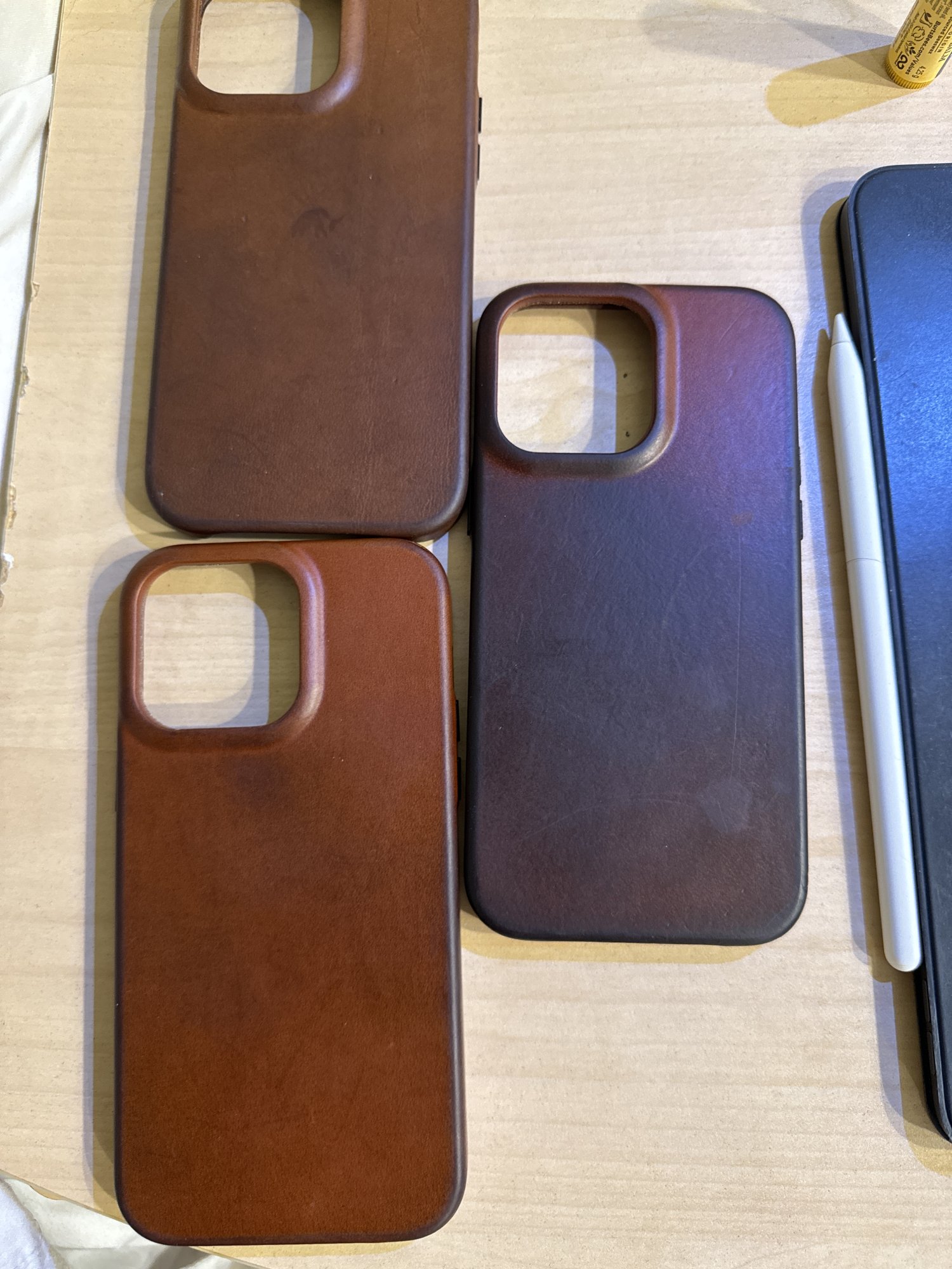 My Decoded leather case in "Clay", Andar Aspen in Camel Tan and the blue Apple Finewoven which is going back to Apple today. The colour in the pics look a bit lighter than they appear in real life.