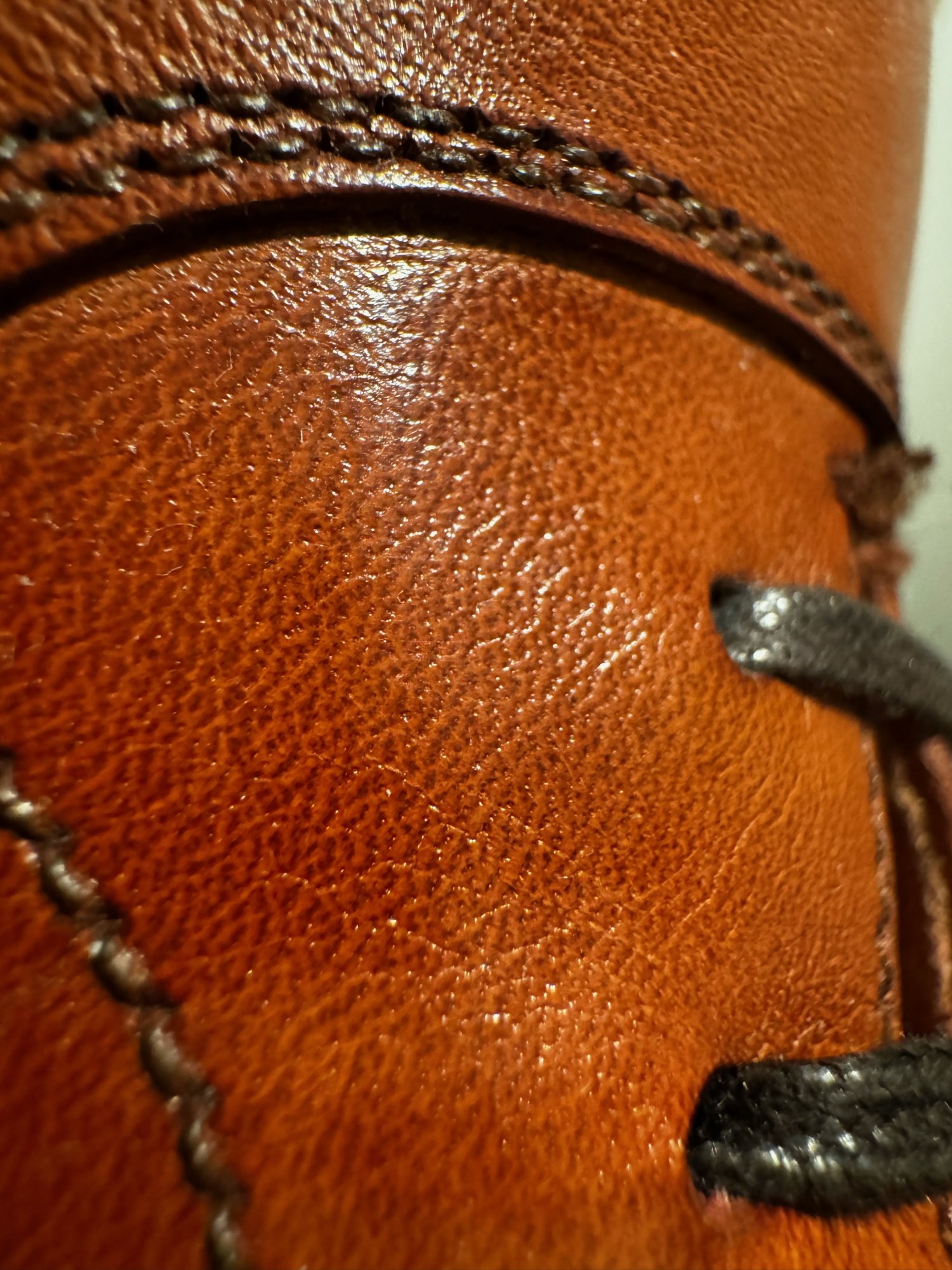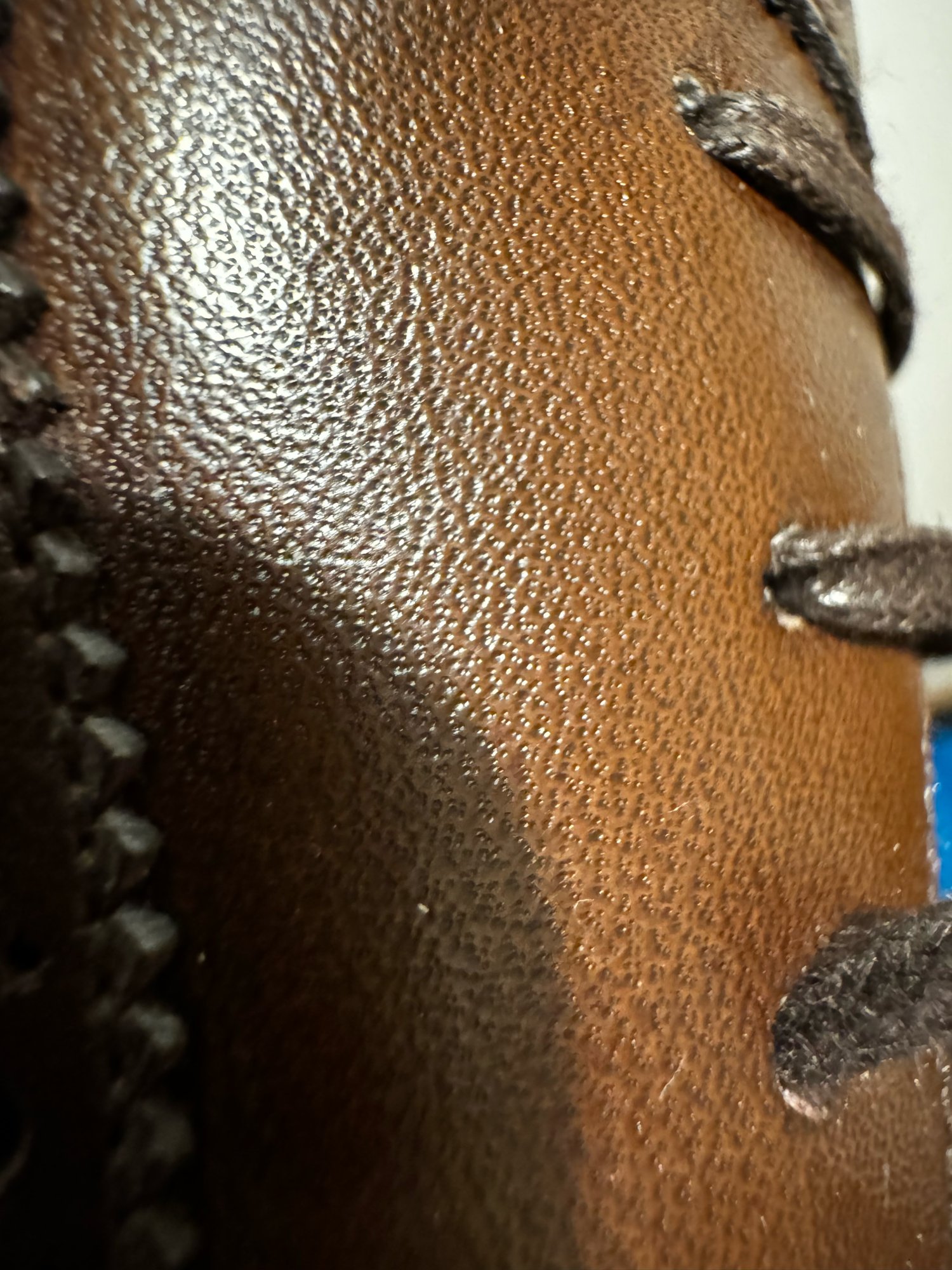 On full grain leather you can easily see tiny indentations where the pores are. Top grain has the very top layer sanded down to remove blemishes, bug bites and imperfections and due to this has a much more smooth and uniform look. Most of the time you cannot see open pores on top grain leather.Can we tell if it’s full grain or top grain from the pictures?