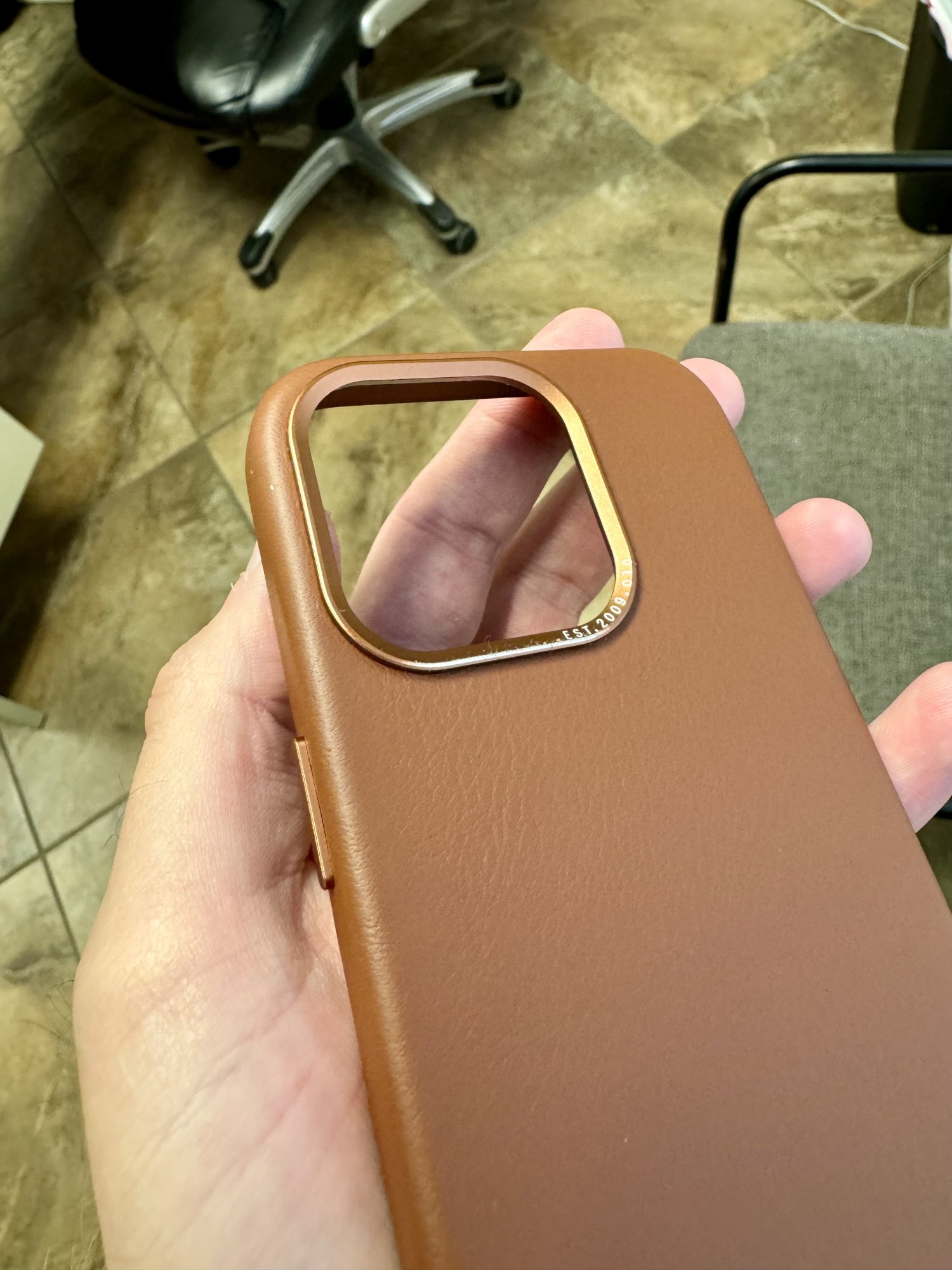 My pic show what happened when it fell onto a flat sidewalk. Apple leather never let me down like this before—never needed a rear camera protector glass with Apple.