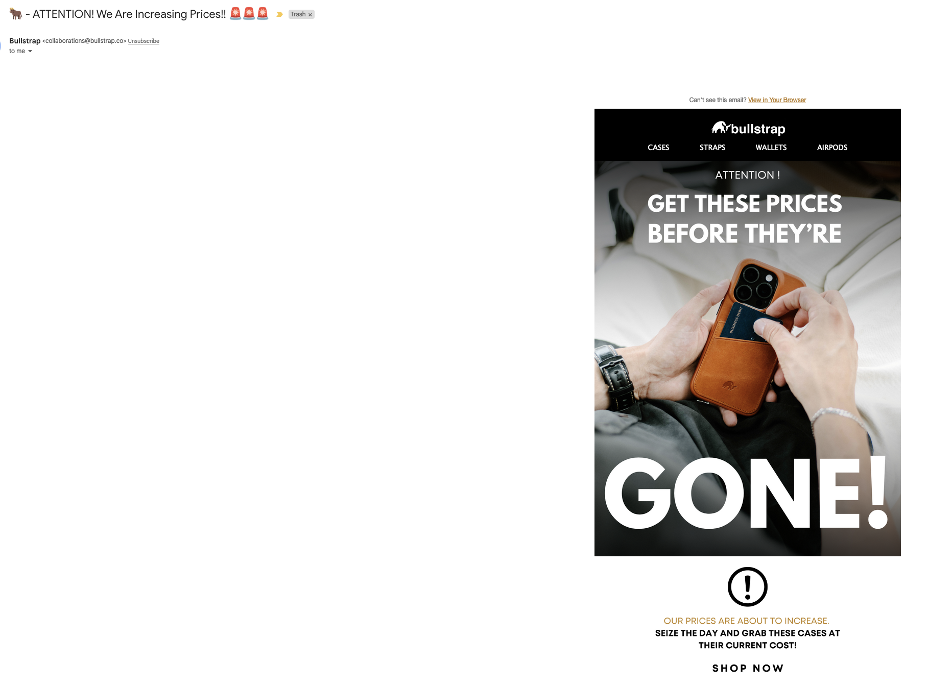 You trolling?Just got an email saying Bullstrap are about to raise prices...
