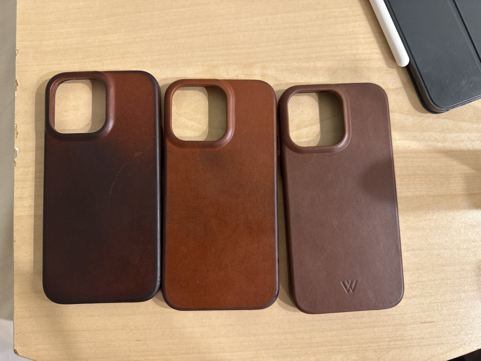 Better photo maybe, so left to right, RL after many months, most used case since november 2022. Then a new RL in april of 23, but I still ended up using the older one. And then now my wilken on the right that i started using on the 14th while I wait for my new RL to ship for my 15PM.