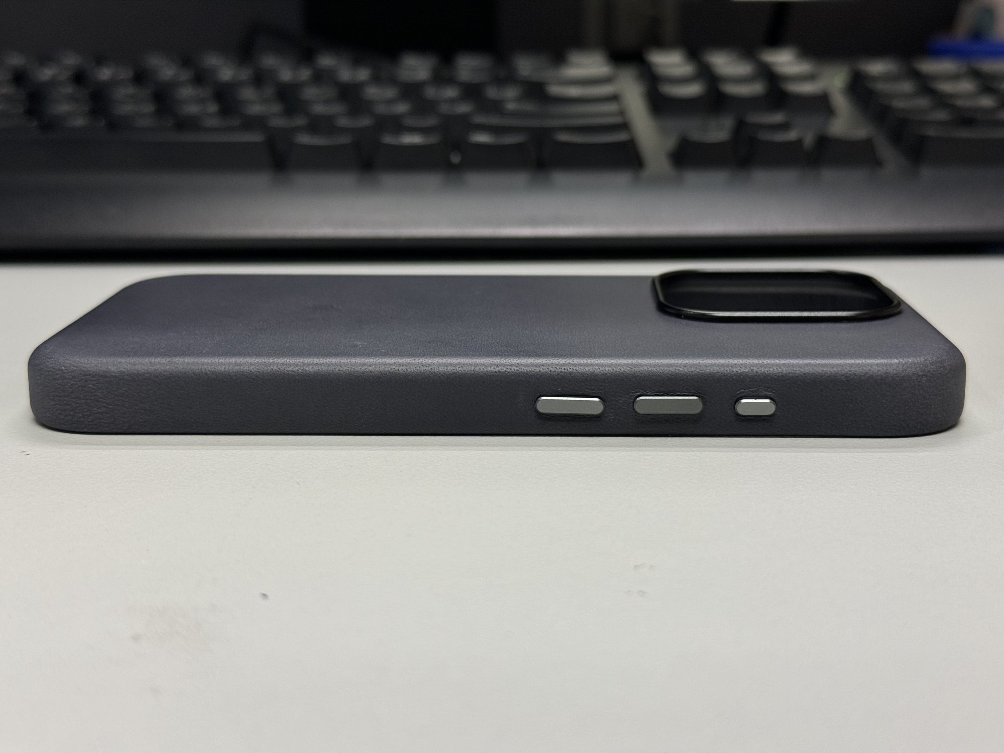 The leather is dry and grainy. That is secondary to the issues with the buttons and the fit. The volume down and lock buttons are completely recessed into the sides of the case. they do not click at all, and it's obvious that they were inset incorrectly because they were not straight (this is most obvious on the lock button). Further, the bottom corners do not grasp the phone securely and they pop out constantly. I thought this would go away with some wearing in so I used the case for a week to see if some wear would help. it did not.